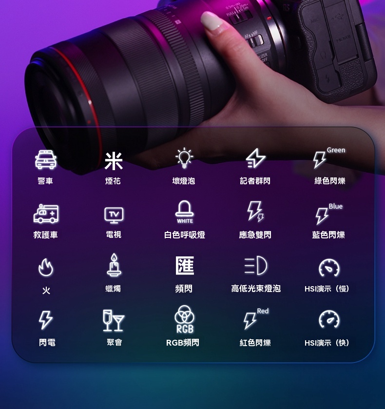 • 內置20種動感光效,滿足多樣化創意攝影需求。