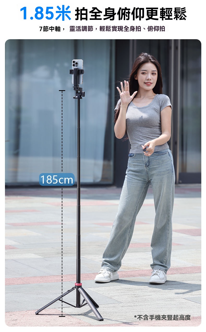 • 最大展開高度達1.85米,適合全身拍攝