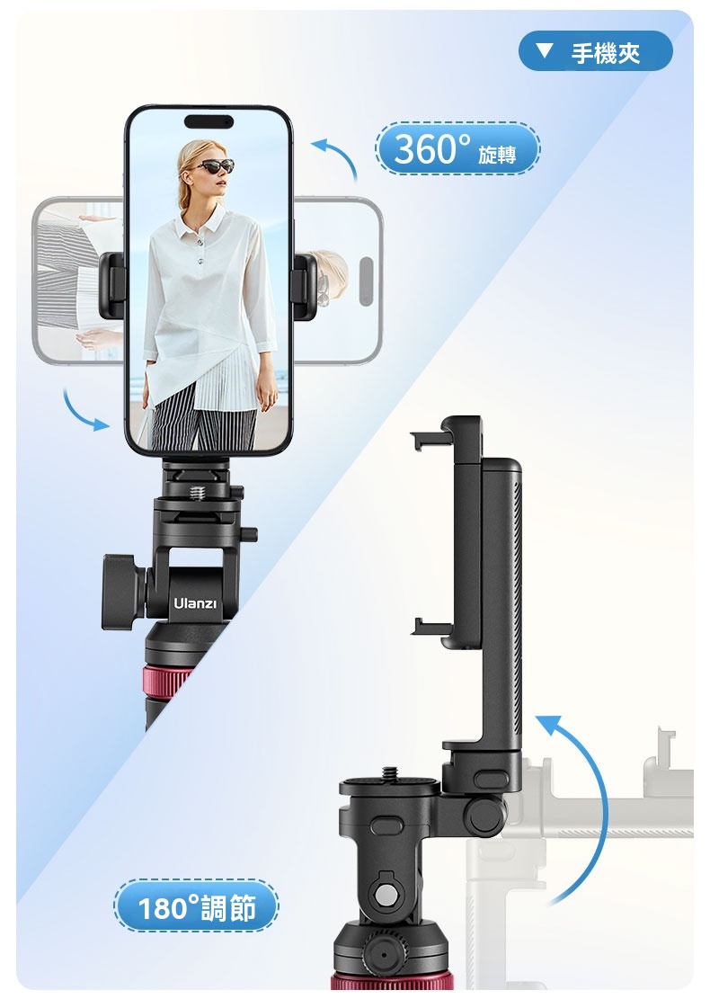 • 手機夾具備360°旋轉功能,角度調整靈活