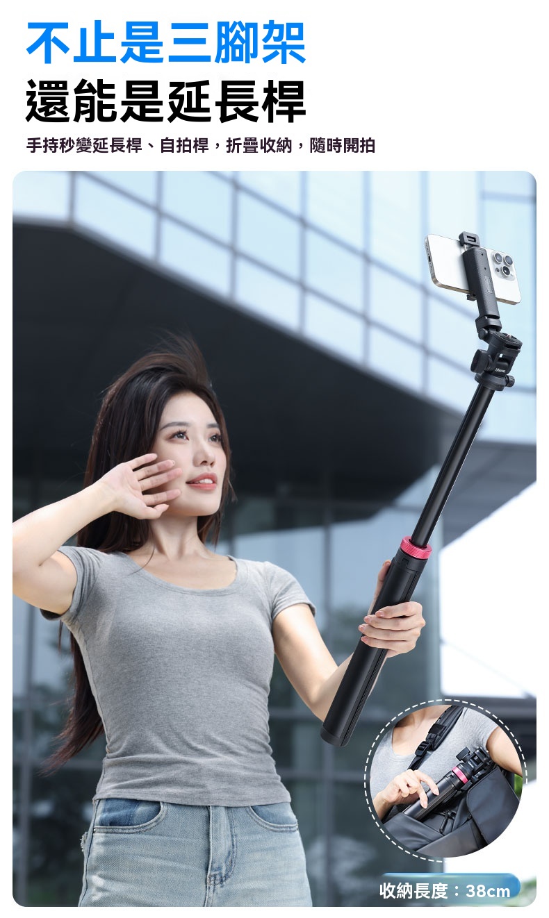 • 收納後長度僅38cm,輕便易攜,方便攜帶