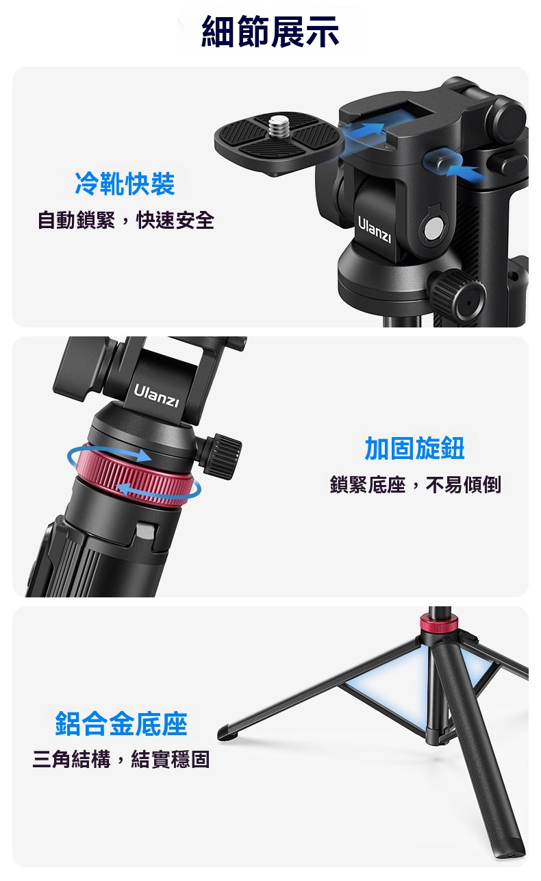 • 採用鋁合金底座,三角結構設計,穩定性高