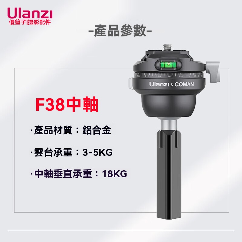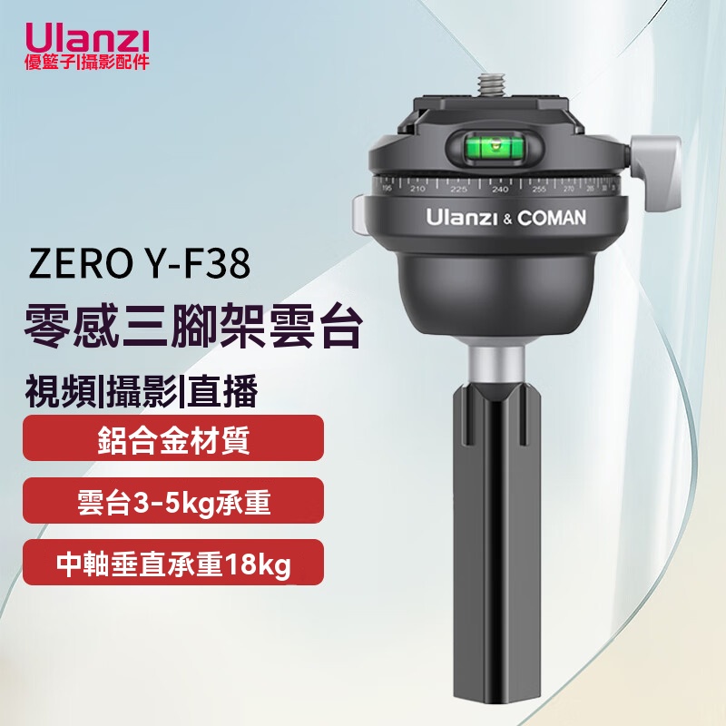 Ulanzi F38旅行腳架快裝雲台,是出行拍攝的得力搭檔。它採用碳纖維材質,僅重1.08公斤,收納後長45厘米,輕巧便攜。五段式腳架透過底部旋鈕拉開,偏心管結構操作快速。最大管徑約34.5mm,最小管徑約24.1mm,全部展開加雲台後高度可觀。中軸底部掛鉤可掛物增穩,扭開還藏有手機夾。雲台為視訊雲台,阻尼順滑,承重達3公斤,能滿足主流相機加鏡頭的需求,且有鎖扣與六角鑰匙。搭配F38快裝系統,可在腳架、滑軌、穩定器間快速切換,一體成型碗式設計能360度調節,輕鬆應對不平地面 。