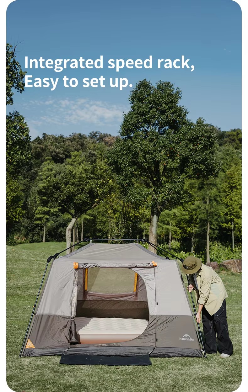 Naturehike Cape5.2方形快搭帳篷(CNK2450WS037),專為3-4人戶外露營設計。其採用自動彈開設計,搭建輕鬆,短短3-5分鐘即可完成,讓你迅速擁有戶外「小家」。帳篷空間寬敞,內部高度適宜,可舒適容納多人,還可放置小桌椅。選用高品質防水布料,有效阻擋雨水,搭配穩固結構,具備良好的防風特性。合理的通風口設計,保障內部空氣流通,減少悶熱與潮濕感。無論是家庭出遊或戶外徒步,都能為你帶來便利又舒適的露營體驗。