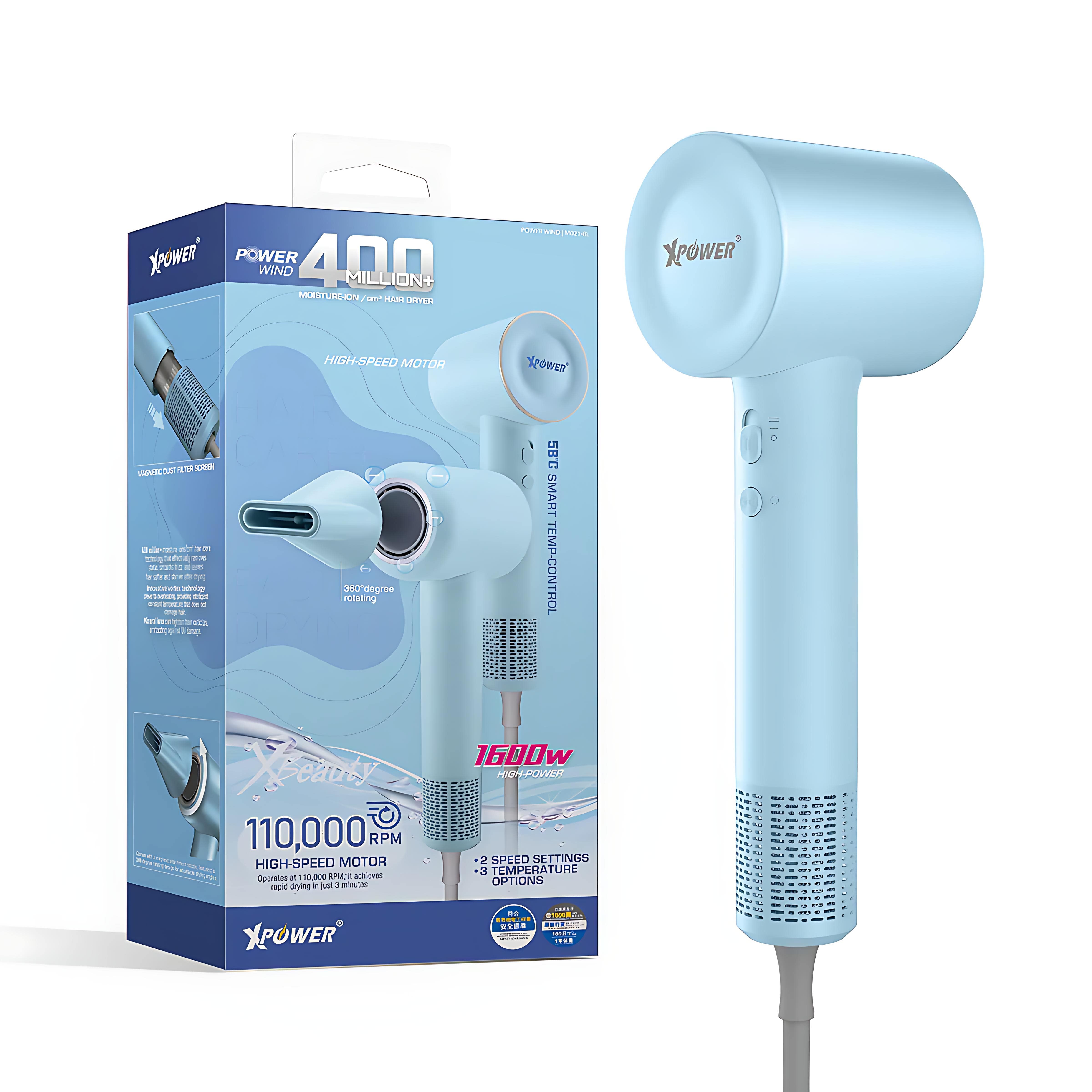 XPower POWERWIND負離子護髮速乾風筒,是呵護秀發的優質選擇。它配備負離子產生器,能釋放大量負離子,有效中和頭髮中的正電荷,減少靜電產生,撫平毛躁,讓秀髮順滑易梳理。其速乾功能出色,強勁風力可快速帶走頭髮水分,大幅節省吹乾時間。獨特風道設計,使氣流均勻分散,避免局部過熱傷害頭髮。無論是日常護理,還是追求高效便捷的吹發體驗,這款風筒都能滿足需求,助你輕鬆打造柔順亮澤秀發 。