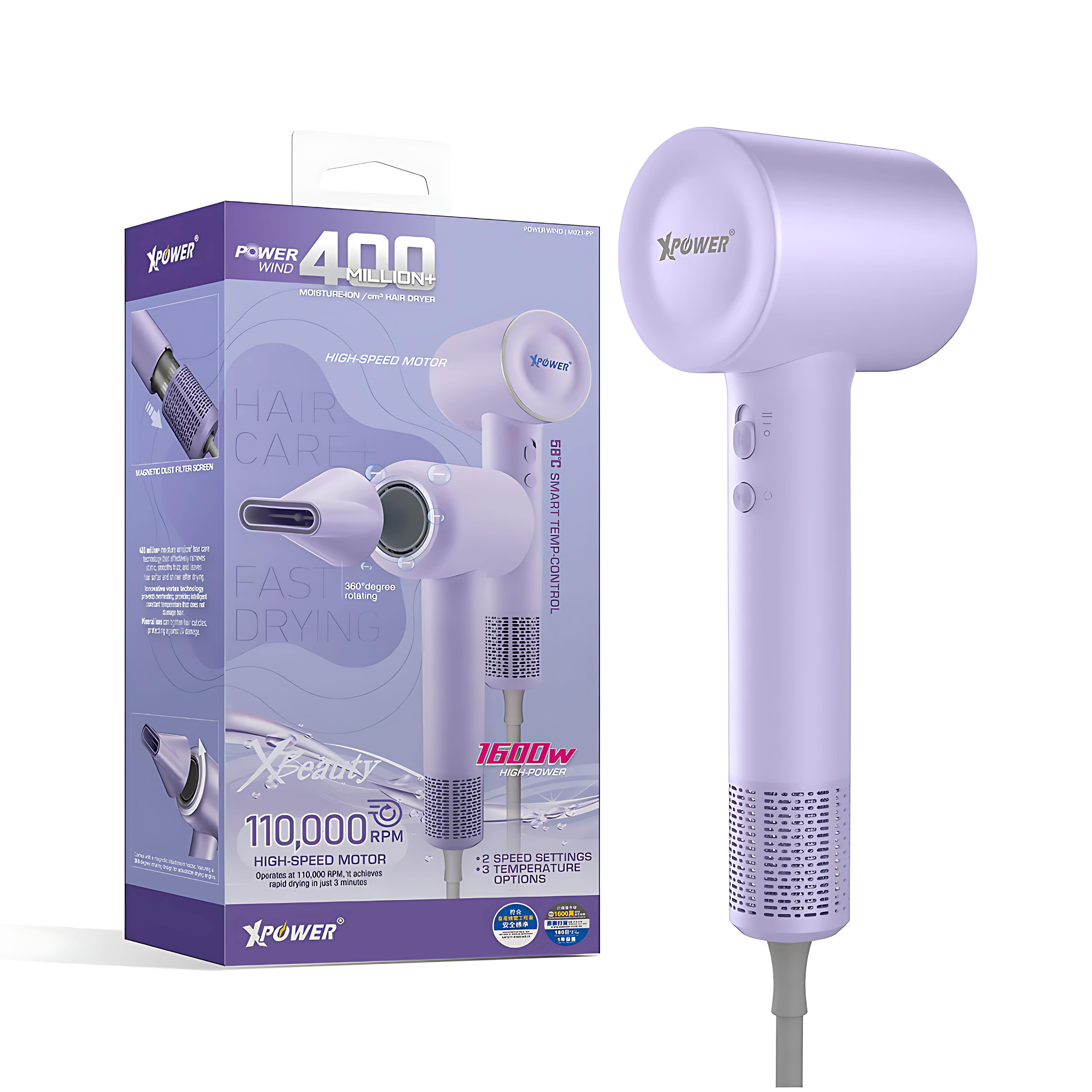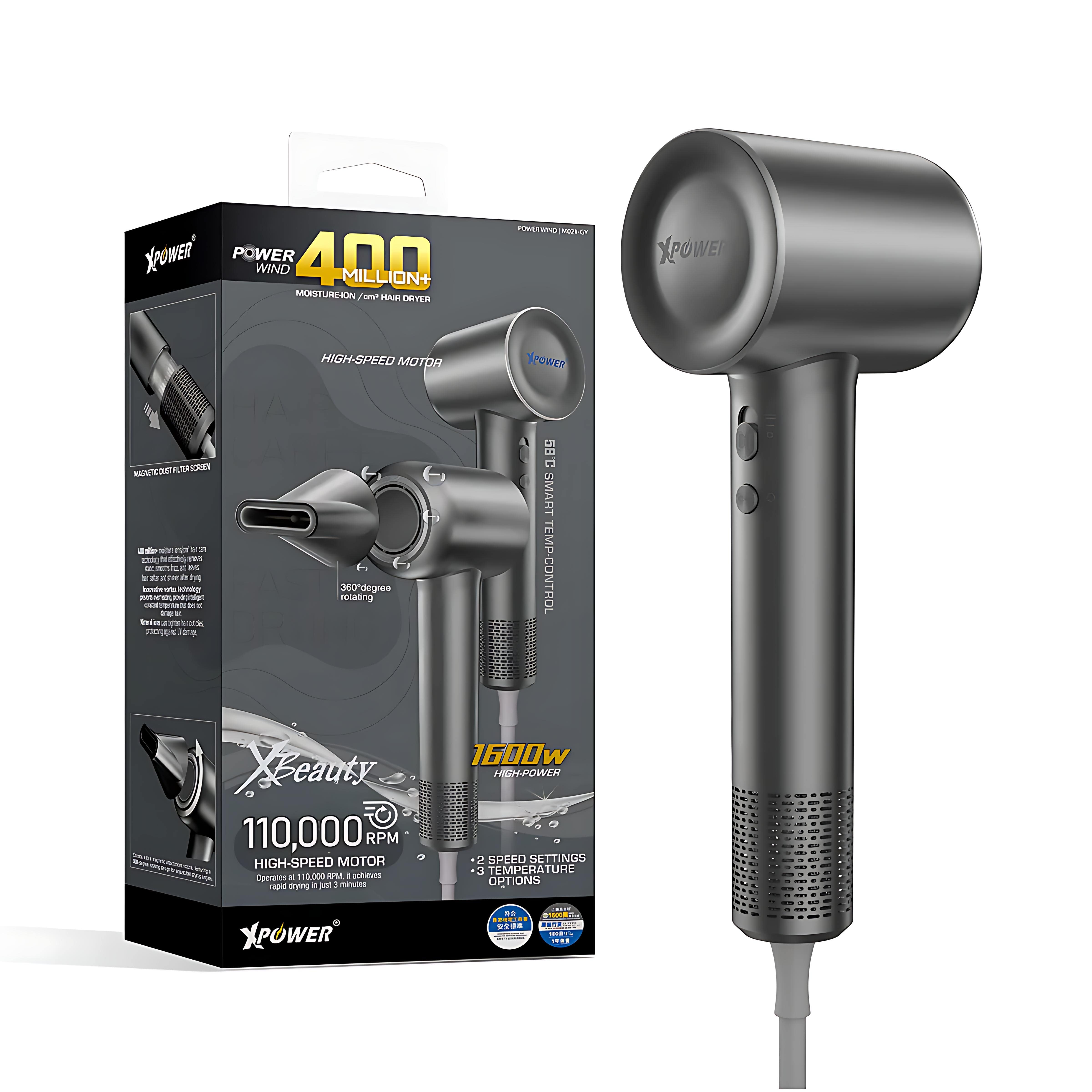 XPower POWERWIND 負離子護髮速乾風筒 - 灰色 | 智能4億+水潤負離子/cm3 護髮技術 | 智能恆溫 | 香港行貨