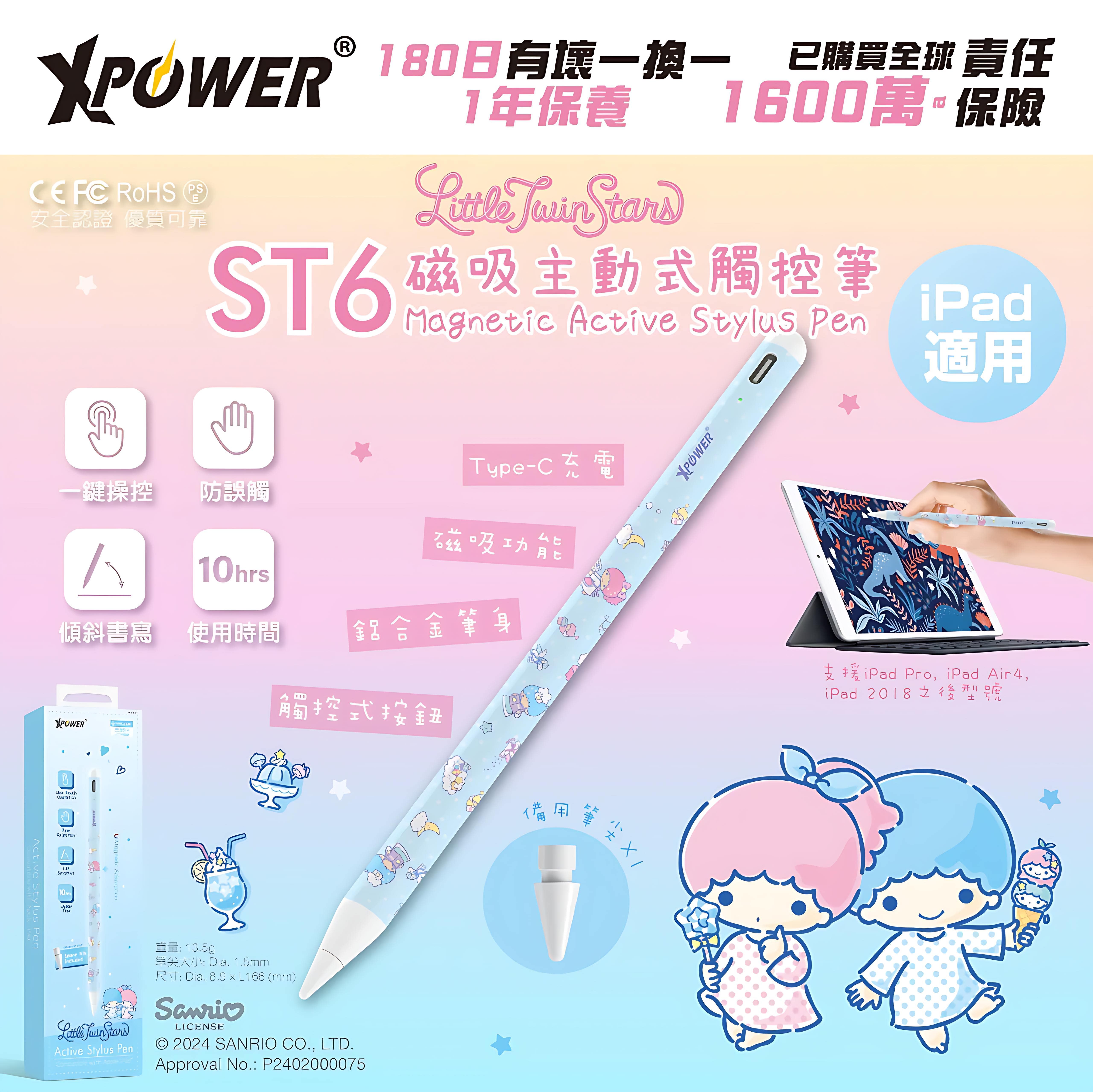 Buy XPower × Sanrio ST6 磁吸主動式觸控筆 (iPad 專用) - Twin Stars | 傾斜書寫功能 | 自動睡眠功能 | 香港行貨 price in outletexpress .com Hong Kong.In promotion and sale.