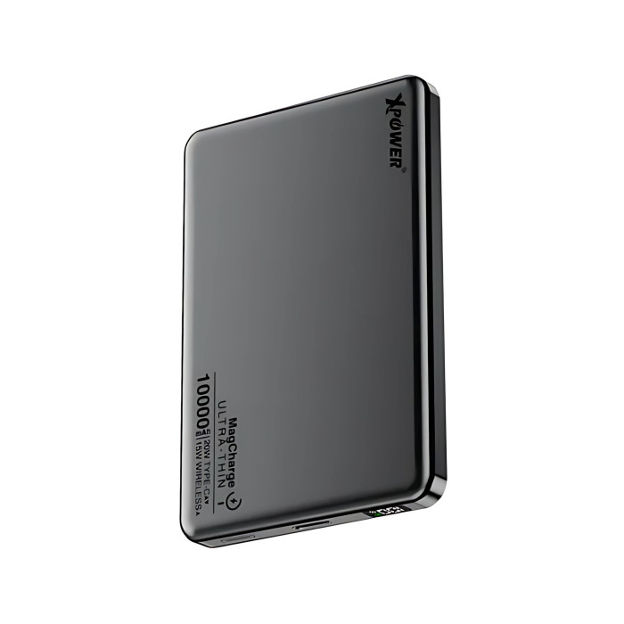 XPower M10K 3合1鋁合金數顯10000mAh行動電源,是出行充電的優質選擇。它具備2種輸出方式,磁吸無線充最大功率達15W ,Type-C支援20W PD 3.0快充,能快速為iPhone15/16等系列手機充電,也支援iOS電量顯示。內建10000mAh石墨烯負極100%純鈷電池,散熱出色。僅重175g,厚度12mm,小巧輕便。 102mm尺寸貼合手機,不擋鏡頭。 N54強力釹磁鐵,吸力增強150%。採用CNC切割圓角鋁合金機身,有LED電量顯示,還附送60W鋁合金Type-C線,安全有保障 。