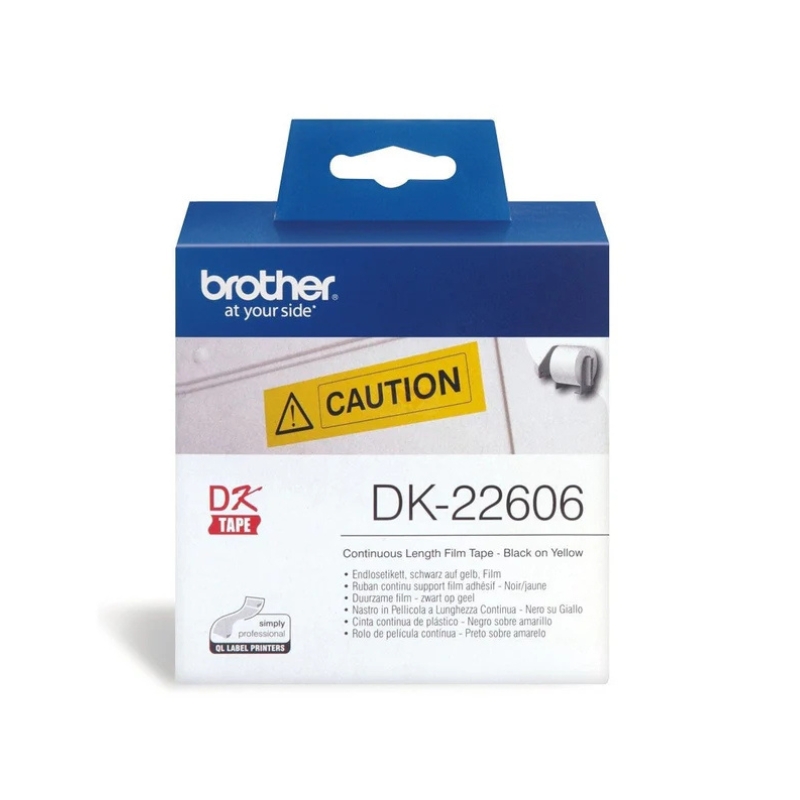 • 連續長度:原廠 Brother DK-22206,黃色膠片上黑色列印,62 毫米寬,15 公尺長