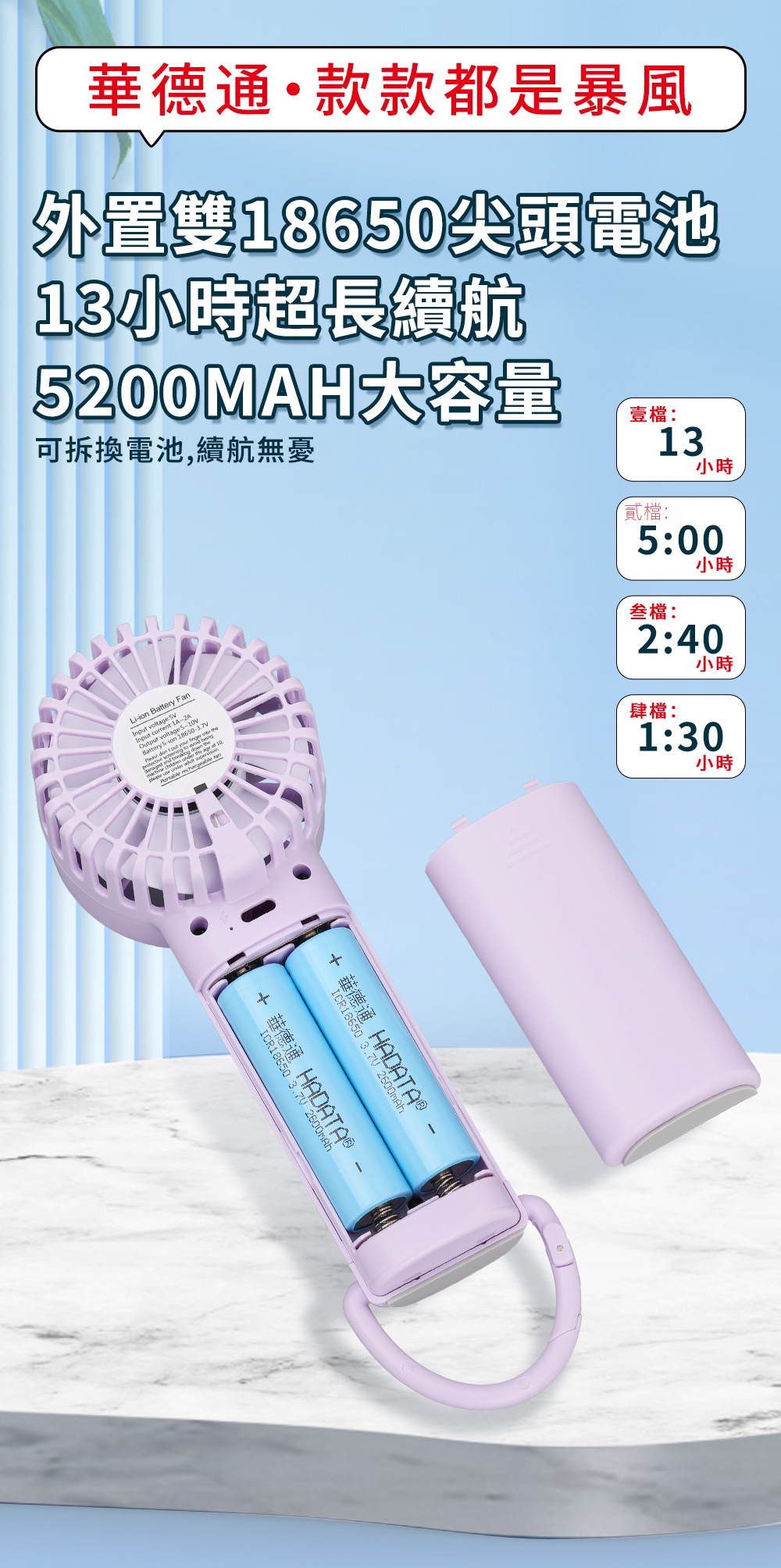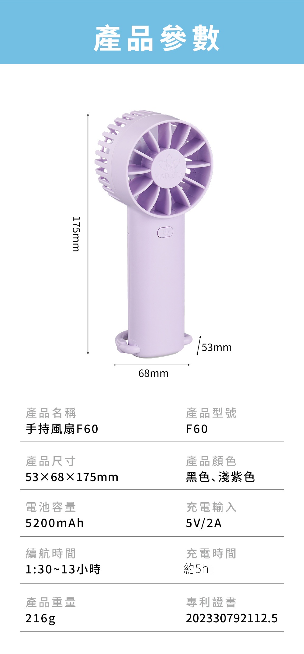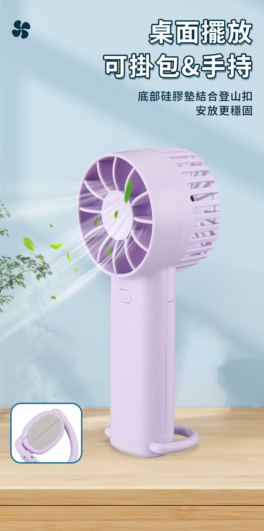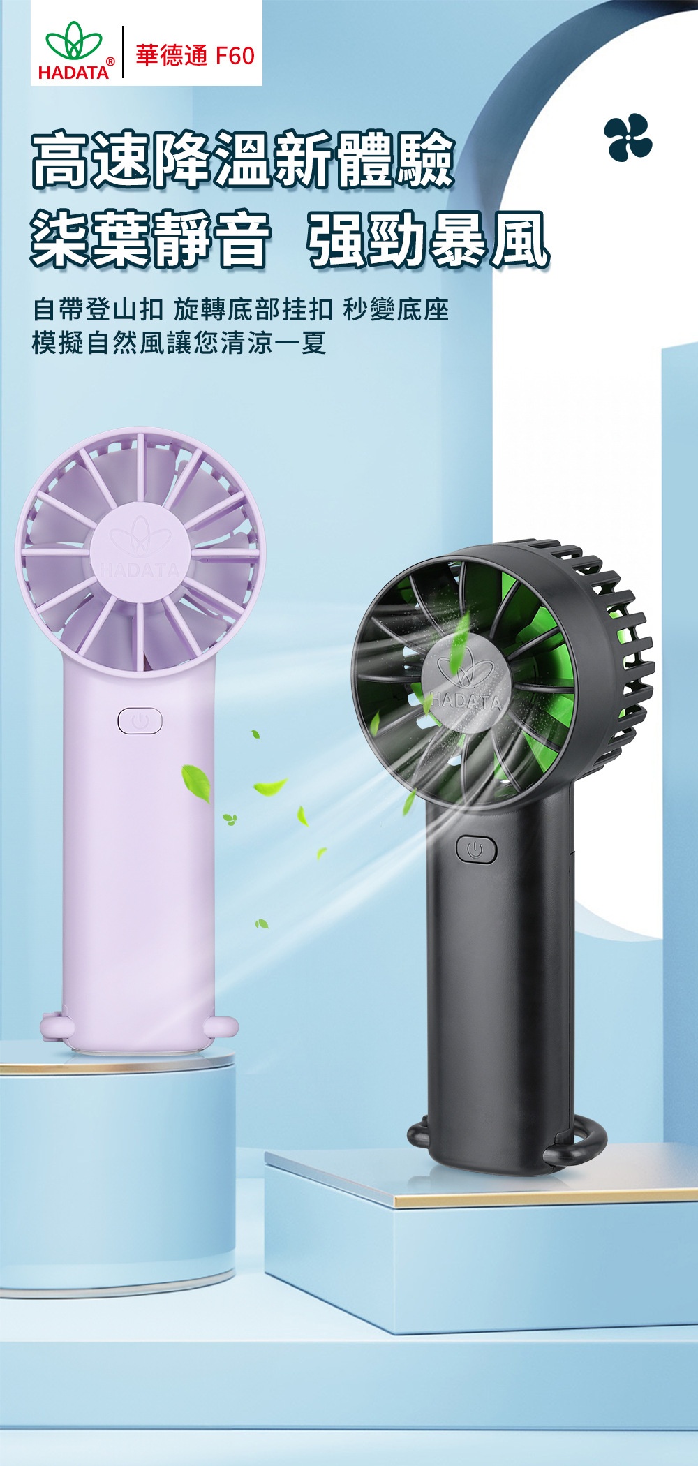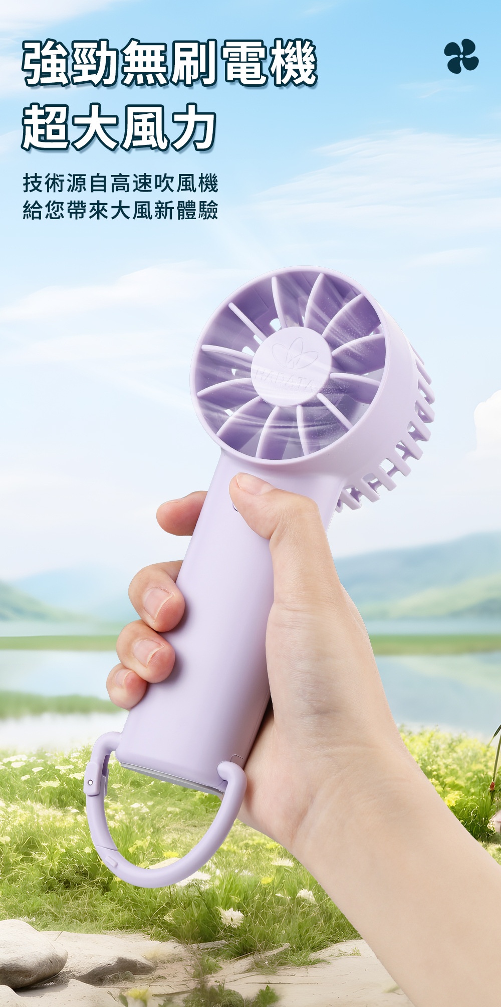 HADATA F60 手持迷你風扇 - 淺紫色 | 强勁無刷電機 | 回彈登山扣