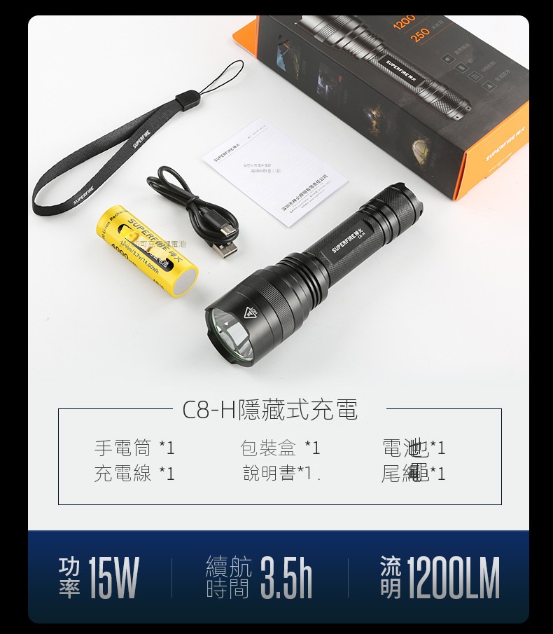 Outlet Express HK 生活百貨城在香港觀塘提供 神火LED強光防水手電筒 C8-T6 10W+座充 | 大功率燈芯 | 五檔燈光 | IP46防水 在那裡買邊到買或邊度買代理資料及價錢實惠借批發優惠以及公司學校報價,更可送到香港或澳門而部份產品比團購更優惠,更可以為你推薦推介相似產品及優點缺點,請留意我們最新產品價格更新。
