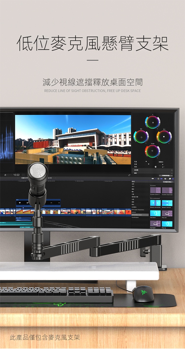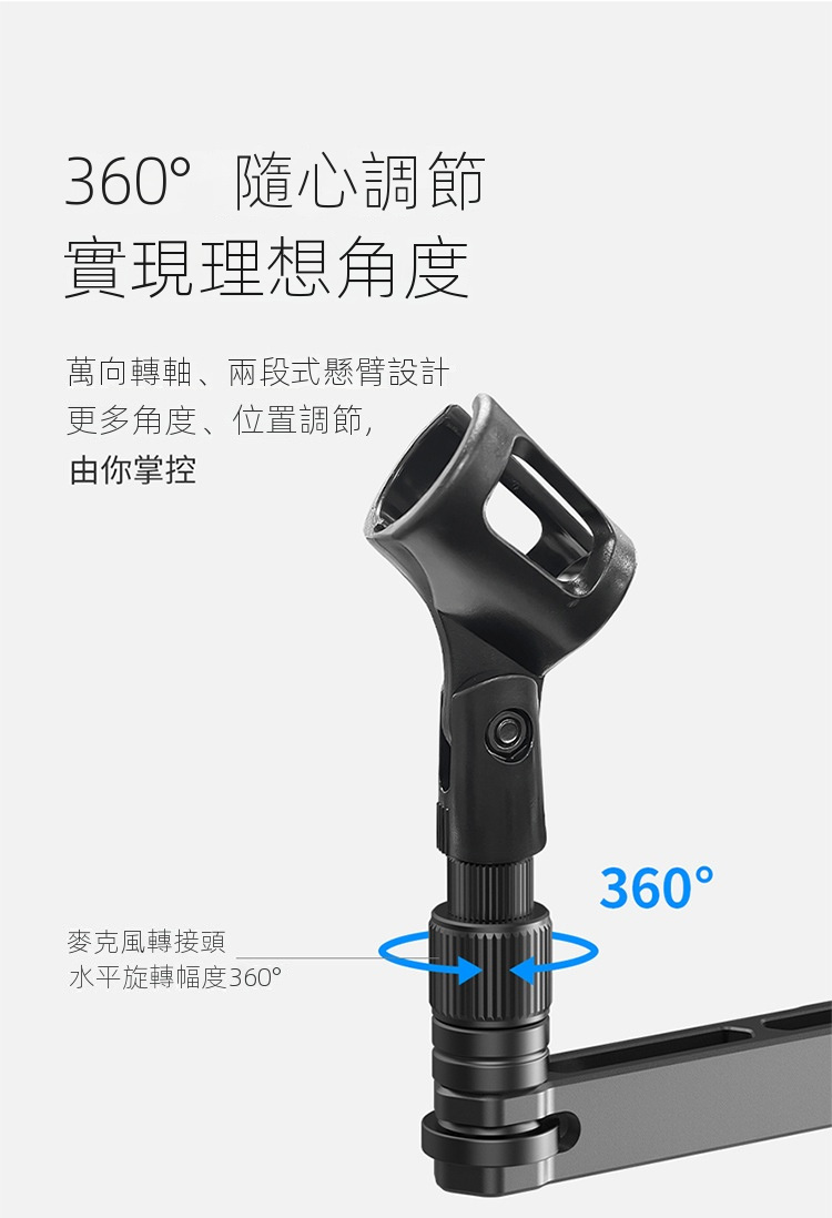 VIJIM LS26 低位麥克風懸臂支架,穩固不下墜,承重達2KG。48cm超長臂展,360°多角度隨心調節,實現理想錄音角度。加寬C形夾設計,保護桌面不傷痕。兼容多種類型麥克風,配備多尺寸轉接口,方便切換使用。1秒輕鬆收納,釋放桌面空間,適合網絡直播、廣播電臺及K歌錄音等場景,提升工作效率與體驗。全鋁合金結構,堅固耐用,是專業錄音的理想選擇。