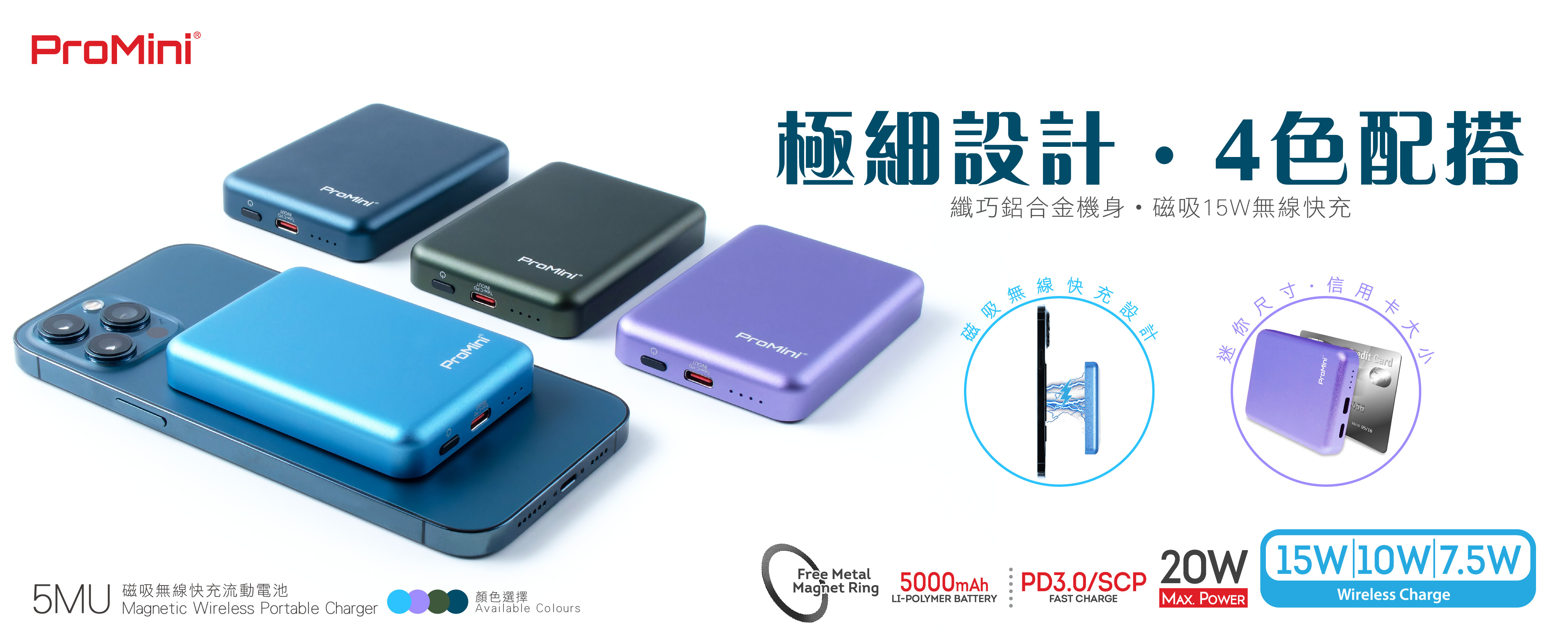 ProMini 5MU磁吸無線快充流動電池,擁有5000mAh容量,能滿足日常外帶充電需求。其採用纖巧鋁合金機身,不僅質感出色,還堅固耐用。磁吸能力十分強勁,可輕鬆吸附手機,徹底告別傳統充電線的束縛,只需一貼,即可開啟無線充電,帶來便利充電體驗。無論是在忙碌的通勤途中,還是休閒外出時,它都能隨時為設備快速補電,讓你擺脫電量焦慮,是出行充電的得力好幫手 。