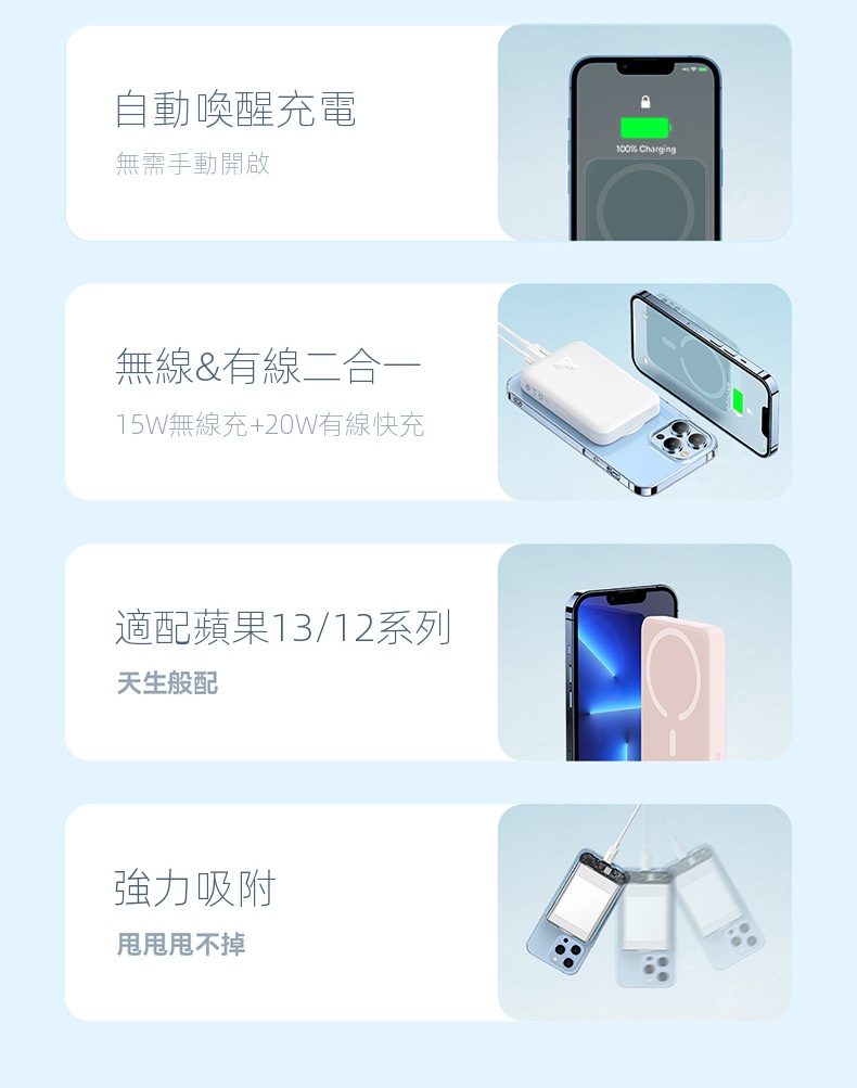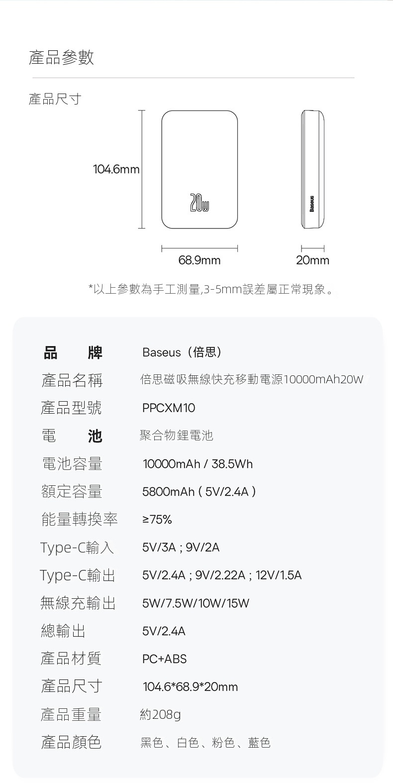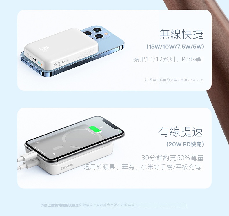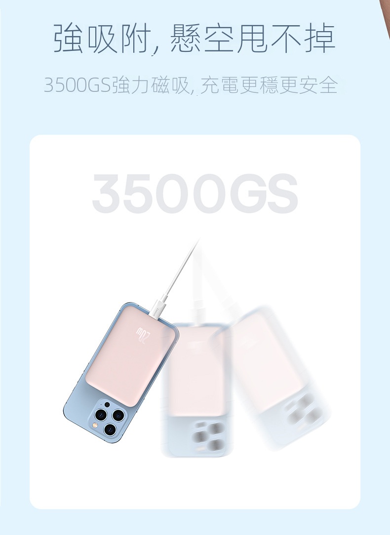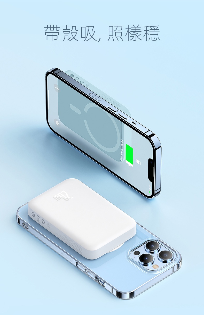 倍思Magsafe 20W磁吸充電寶10000mAh,無線有線二合一,適用iPhone 12/13/14/15系列。自動喚醒充電,強力吸附,穩定可靠。內置大線圈,橫豎皆可充電,方便快捷。具備智能溫控與多重保護功能,安全耐用。LED指示燈顯示電量,出行无忧。符合國際航空標準,輕鬆攜帶,為您的設備隨時提供充足電力。