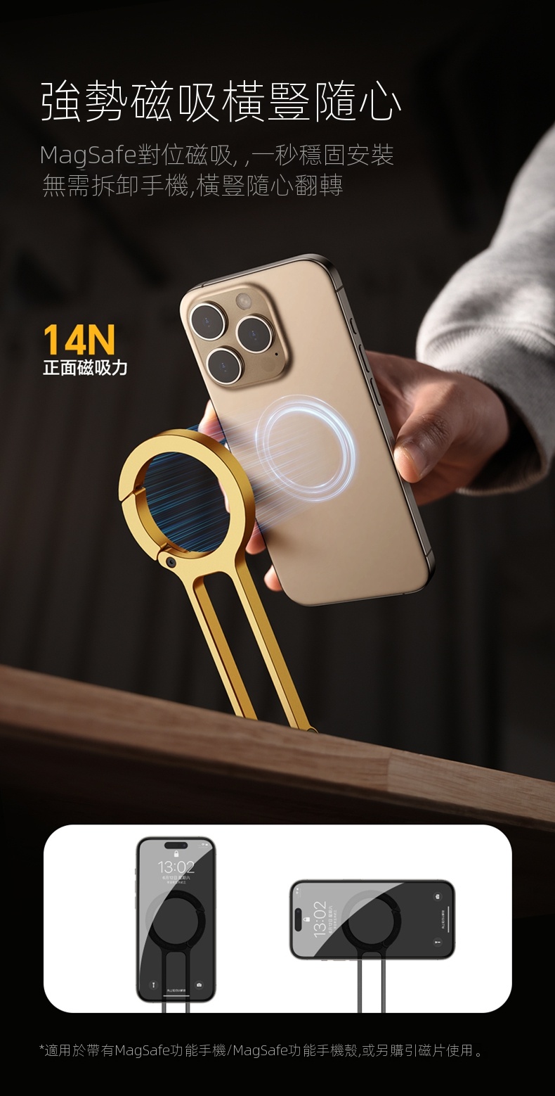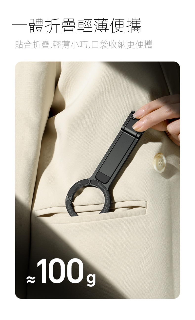 • 雙面磁吸設計,正面吸附手機,背面吸附配件