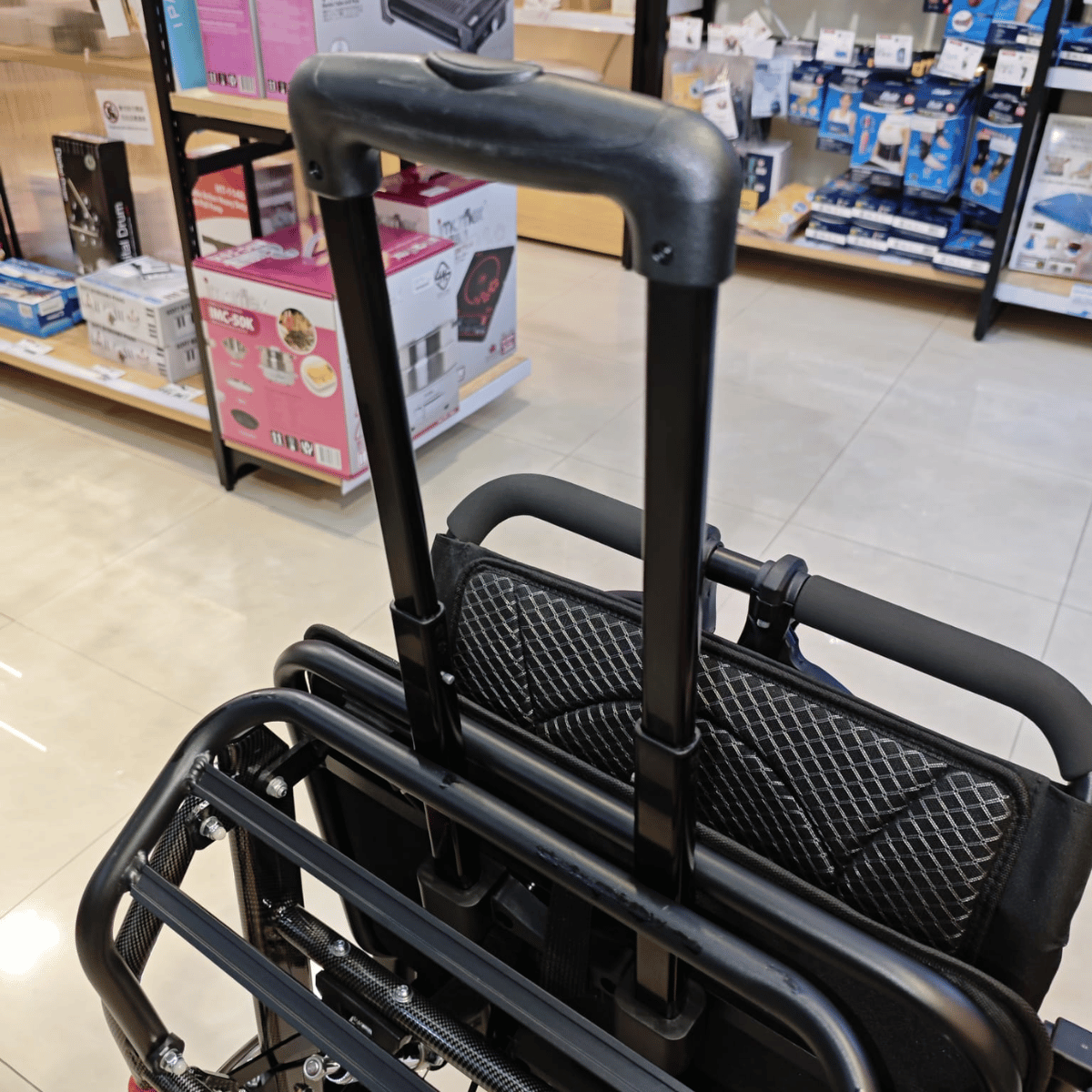 摺椅式摺疊設計,設有行李箱一樣手拉杆