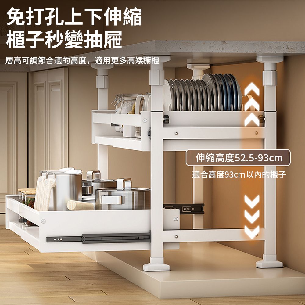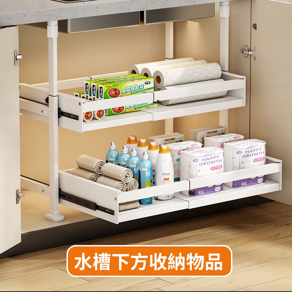 Buy Nidouillet ET048201 廚房雙層免打孔櫃桶式收納架 - 白色 | 層架高度可調 | 櫃桶式抽拉 | 香港行貨 price in outletexpress .com Hong Kong.In promotion and sale.
