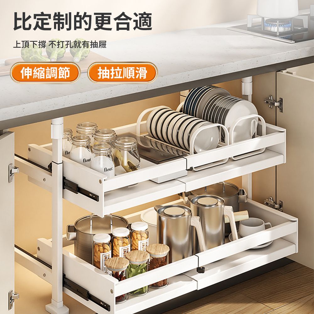 Outlet Express HK 生活百貨城在香港觀塘提供 Nidouillet ET048201 廚房雙層免打孔櫃桶式收納架 - 白色 | 層架高度可調 | 櫃桶式抽拉 | 香港行貨 在那裡買邊到買或邊度買代理資料及價錢實惠借批發優惠以及公司學校報價,更可送到香港或澳門而部份產品比團購更優惠,更可以為你推薦推介相似產品及優點缺點,請留意我們最新產品價格更新。