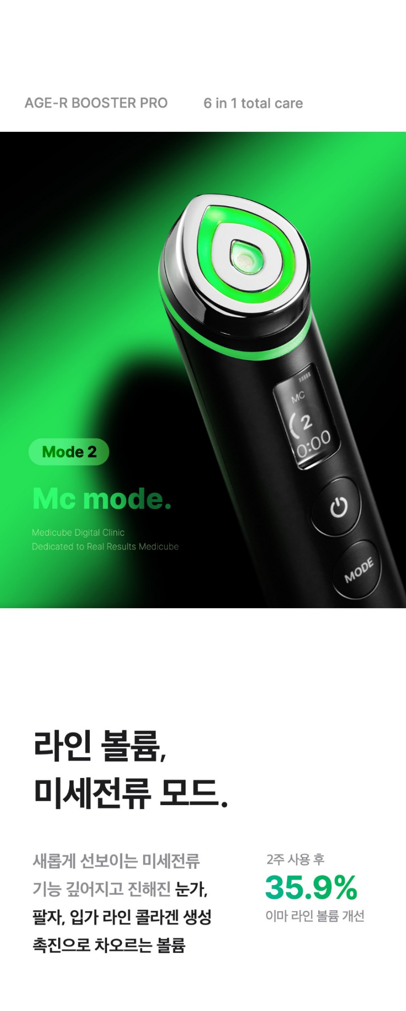 來自韓國的 Medicube Age-R Booster Pro 美容儀,集 6 大核心模式於一體,是居家護膚人氣之選,更斬獲 2024 JESSICA Beauty Award。 Booster 模式提升護膚品吸收達 785%,MC 微電流模式 2 週可促進 35.9% 膠原增生,Derma Shot 模式改善下眼瞼彈性,Air Shot 模式 2 週毛孔改善 34.5%,搭配聲波震動與 5 種 LED 光療,全方位解決光澤、彈性、全方位肌膚問題。儀器配備智慧皮膚識別系統,離膚自動停機,無需額外導入凝膠,可搭配任意護膚品。連接智慧型 App 可記錄使用時間、自訂護理方案,無針無創即可實現水光針般護理效果,幫你輕鬆擁有緊緻輪廓與細緻肌膚。