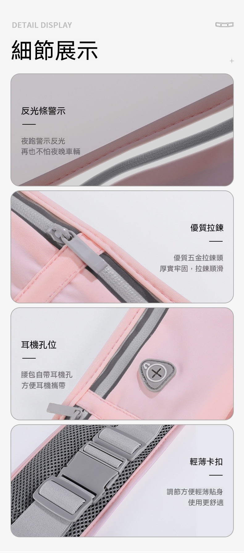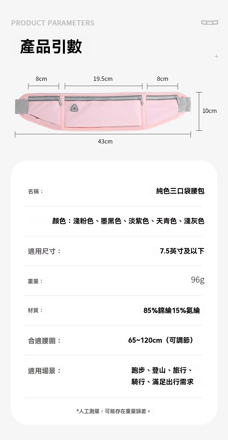 這款輕便健身腰包(墨黑色)專為運動愛好者設計,腰圍可在65至120厘米間自由調節,跑步健身不受拘束。其三口袋設計能輕鬆容納7.2寸以下手機,並可將鑰匙與零錢分開存放,避免刮花手機。包身採用85%錦綸與15%氨綸的親膚透氣材質,配合蜂窩結構,舒適不悶熱;內袋具備防水塗層,有效阻隔汗水。腰包重量僅96克,佩戴輕薄無壓力且不易晃動。細節方面,配有耳機孔、夜跑反光條警示及優質五金拉頭,兼顧實用與安全,滿足跑步、登山、騎行等多種場景需求。