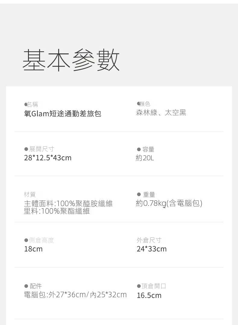 Naturehike 氧Glam短途通勤差旅包,專為都市移動族設計,兼具通勤、出差與戶外多用途需求。內裡功能分區清晰,收納有序,隨手取物更高效。附設行李箱掛帶,解放雙肩輕鬆出行。採用100%聚酰胺與聚酯纖維材質,耐用防潑水,適合日常與短途旅行使用。
