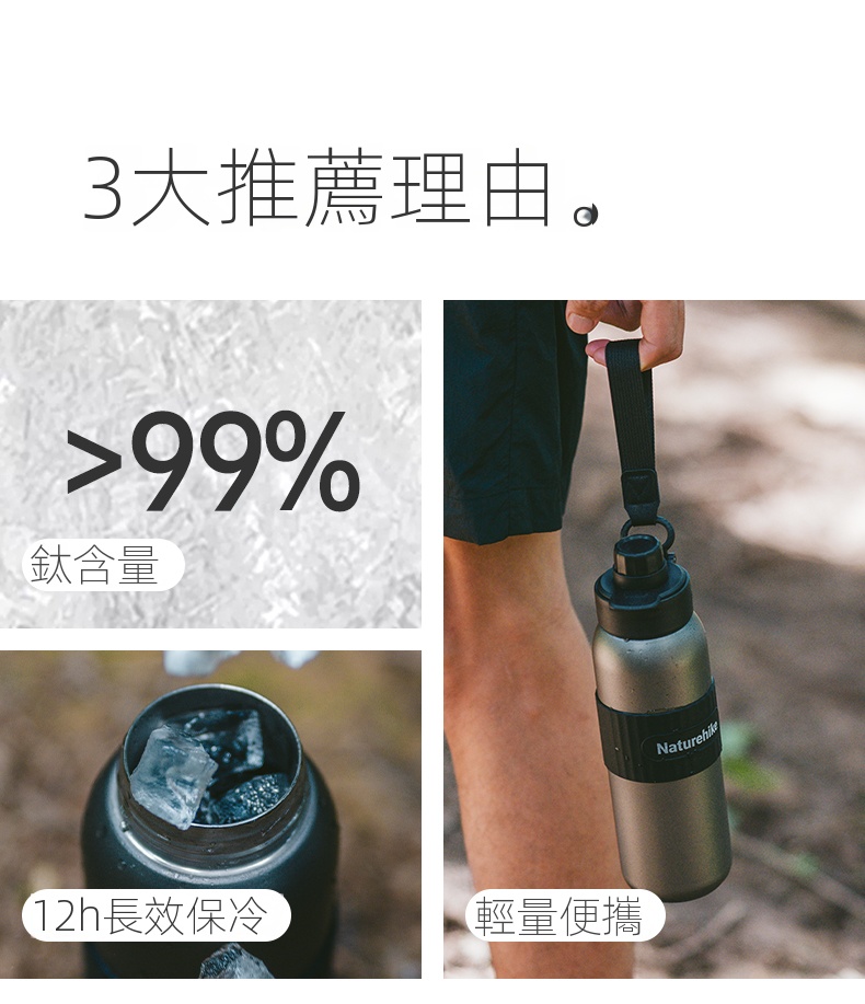 Naturehike 追風·鈦金屬運動水壺,採用內外純鈦打造,含鈦量高達99.88%,具備優異抑菌性能,健康安心。雙層真空結構實現12小時長效保冷,適合冷飲、熱飲多種場景。輕量化設計,攜帶方便,搭配吸管、直飲、暢飲三種出水方式,使用更靈活。適用戶外、健身、城市通勤等多元生活情境,是日常補水的理想夥伴。