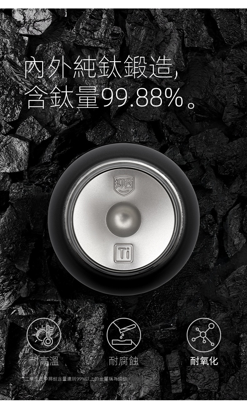 • 內外純鈦打造,含鈦量高達99.88%,抑菌更健康
