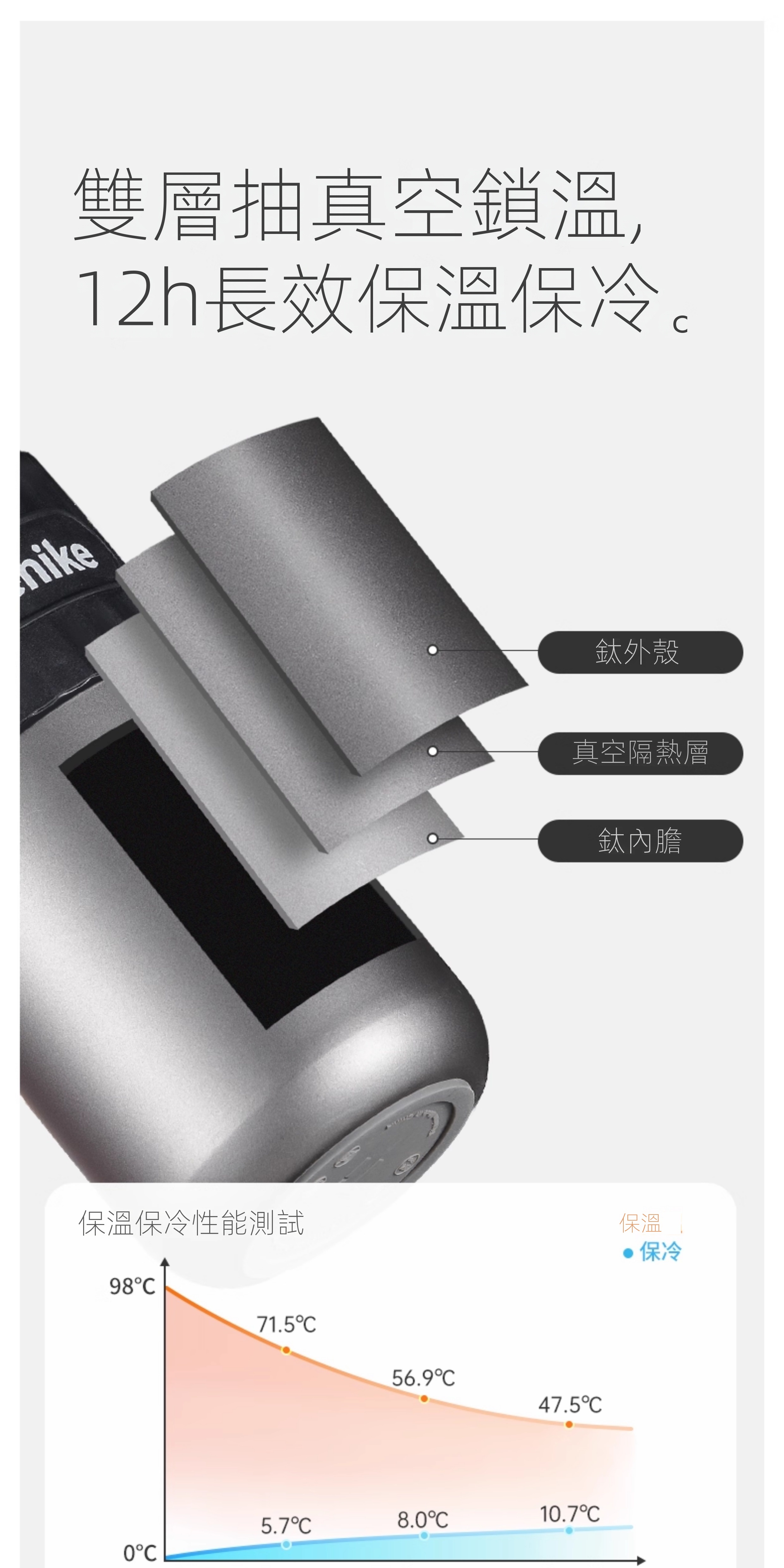• 雙層真空結構,實現12小時長效保冷保溫