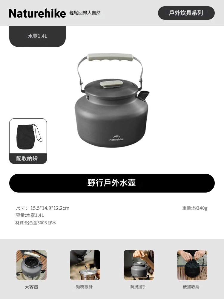 Buy Naturehike 野行 · 戶外露營燒水壺(CNK2450CF030) - 1.4L | 防燙提手 | 大容量暢飲 | 一體式短嘴設計 price in outletexpress .com Hong Kong.In promotion and sale.