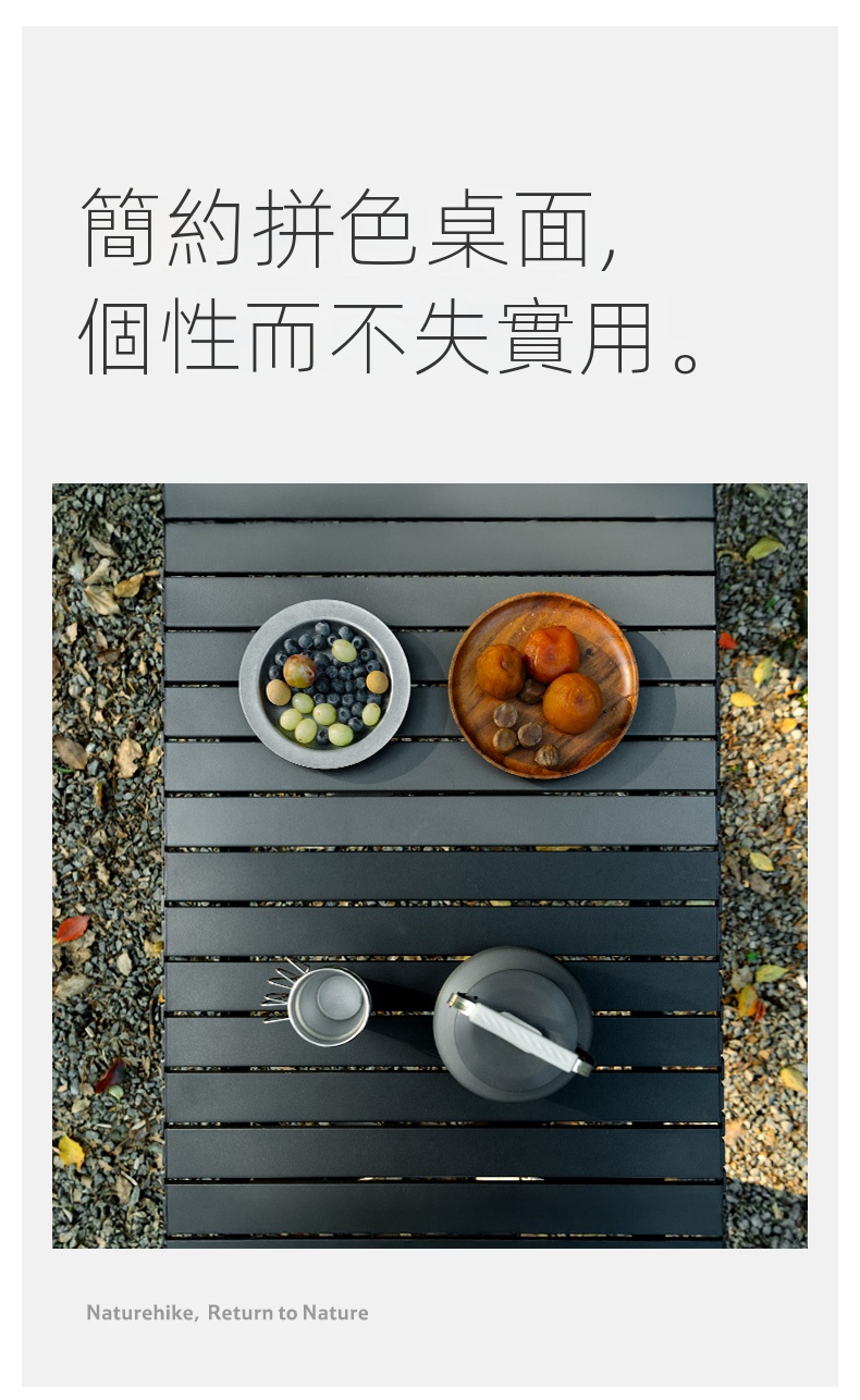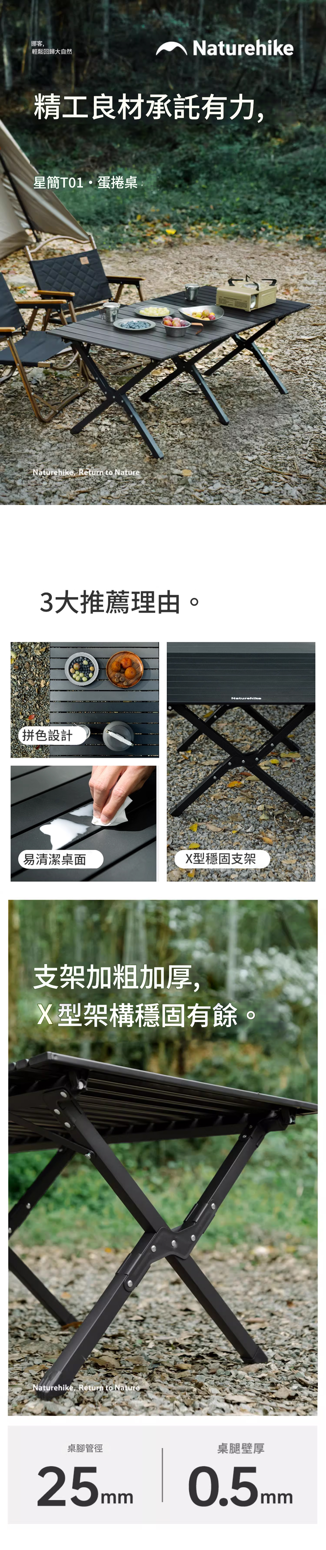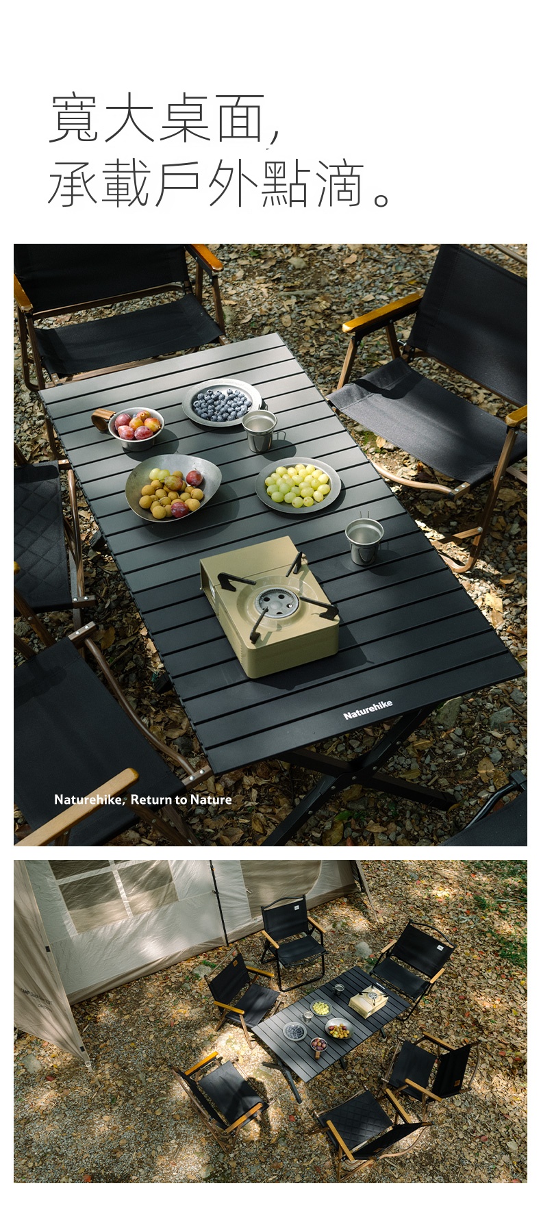 NatureHike Star Jane T01 戶外便攜摺疊蛋捲桌,採用X型穩固支架設計,承重力強,結構堅固耐用。多款尺寸選擇,適合多人野餐或露營使用。桌面採用噴塑工藝,耐高溫、耐污漬、抗刮花,清潔方便。輕巧便攜,,可輕鬆放入車廂。搭配防滑腳墊與按壓式卡扣,展開快速穩定,是戶外活動的理想選擇。