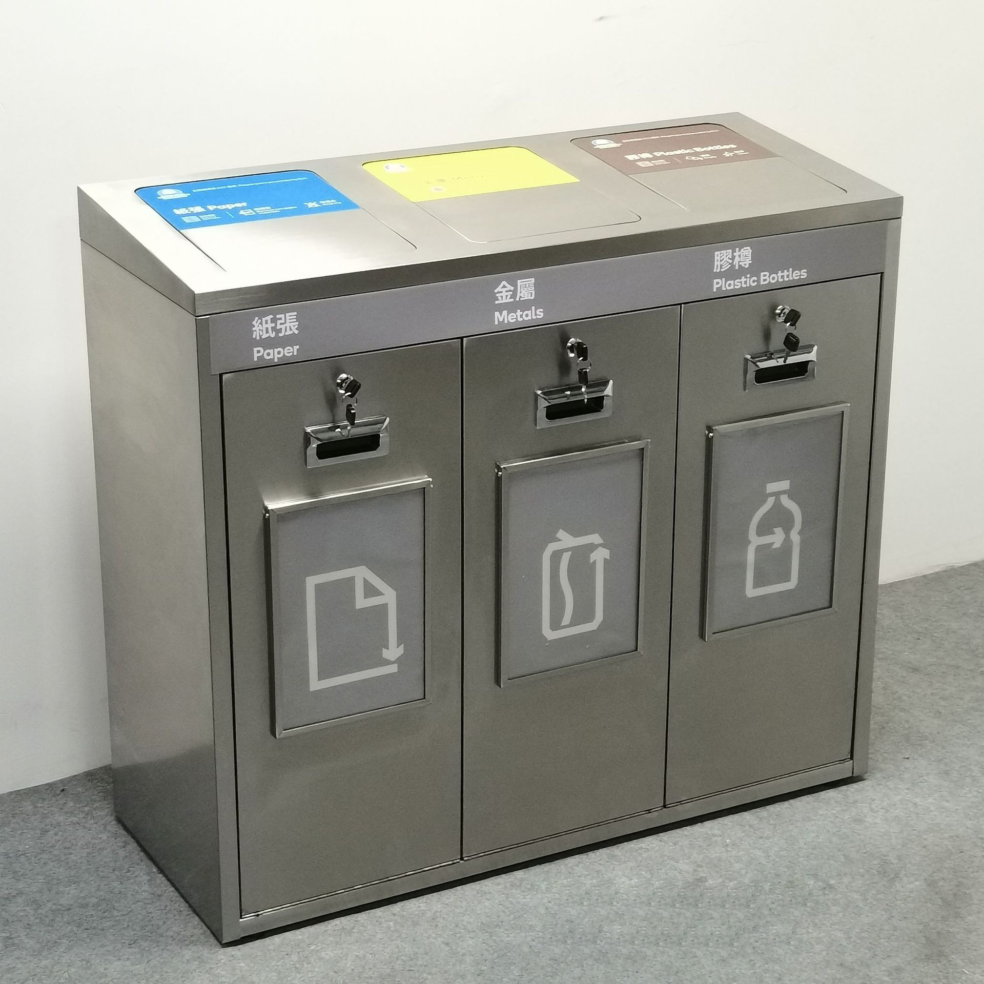 Outlet Express HK 生活百貨城在香港觀塘提供 戶外適配不銹鋼三類回收箱 | 防銹防腐易清潔 | 三類分類設計 在那裡買邊到買或邊度買代理資料及價錢實惠借批發優惠以及公司學校報價,更可送到香港或澳門而部份產品比團購更優惠,更可以為你推薦推介相似產品及優點缺點,請留意我們最新產品價格更新。