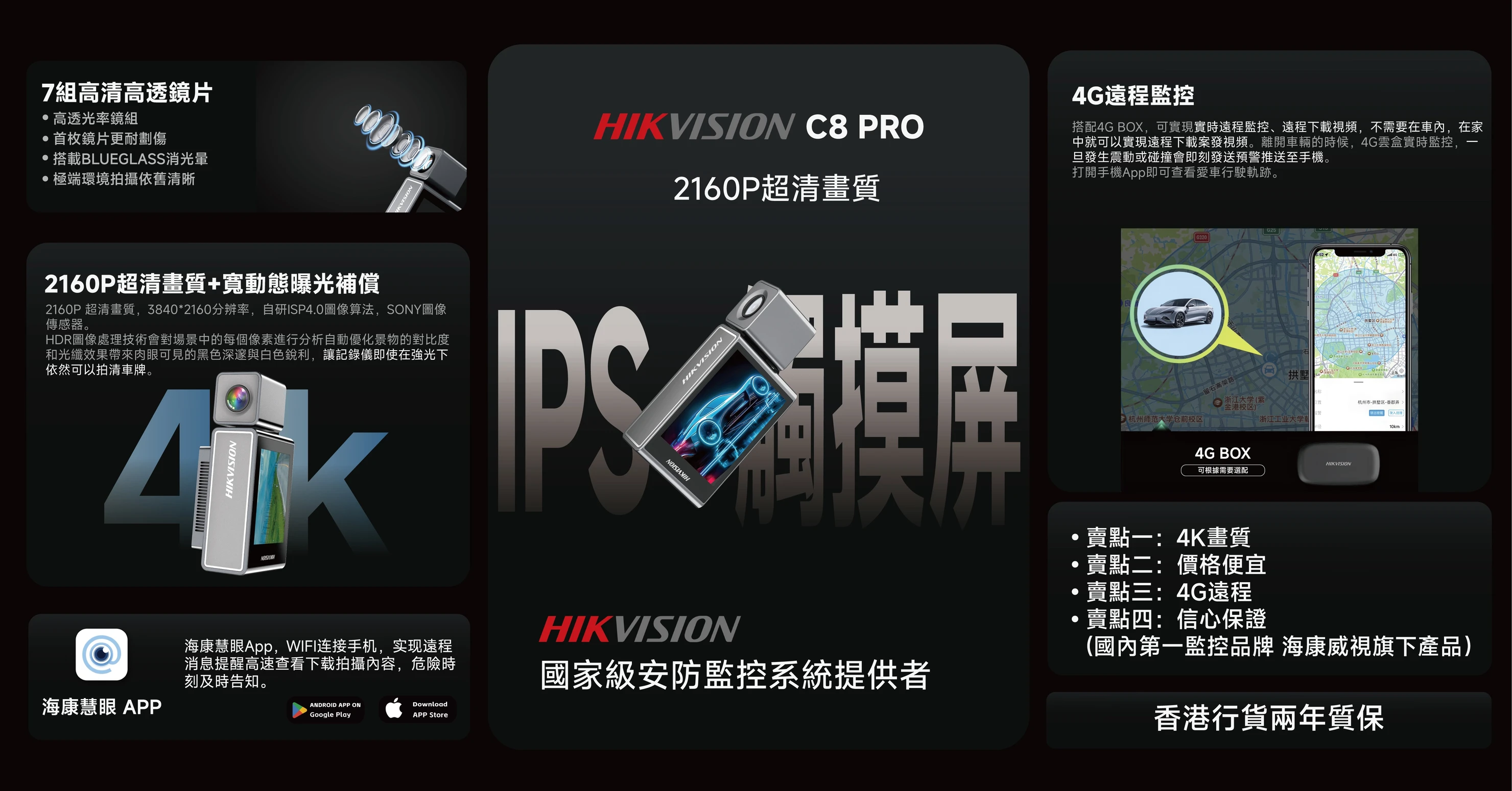 Buy Hikvision C8PRO 4K 前後雙鏡頭行車紀錄儀 | 智能手機App下載影片 | 香港行貨 | 二年保養 | 包安裝 price in outletexpress .com Hong Kong.In promotion and sale.