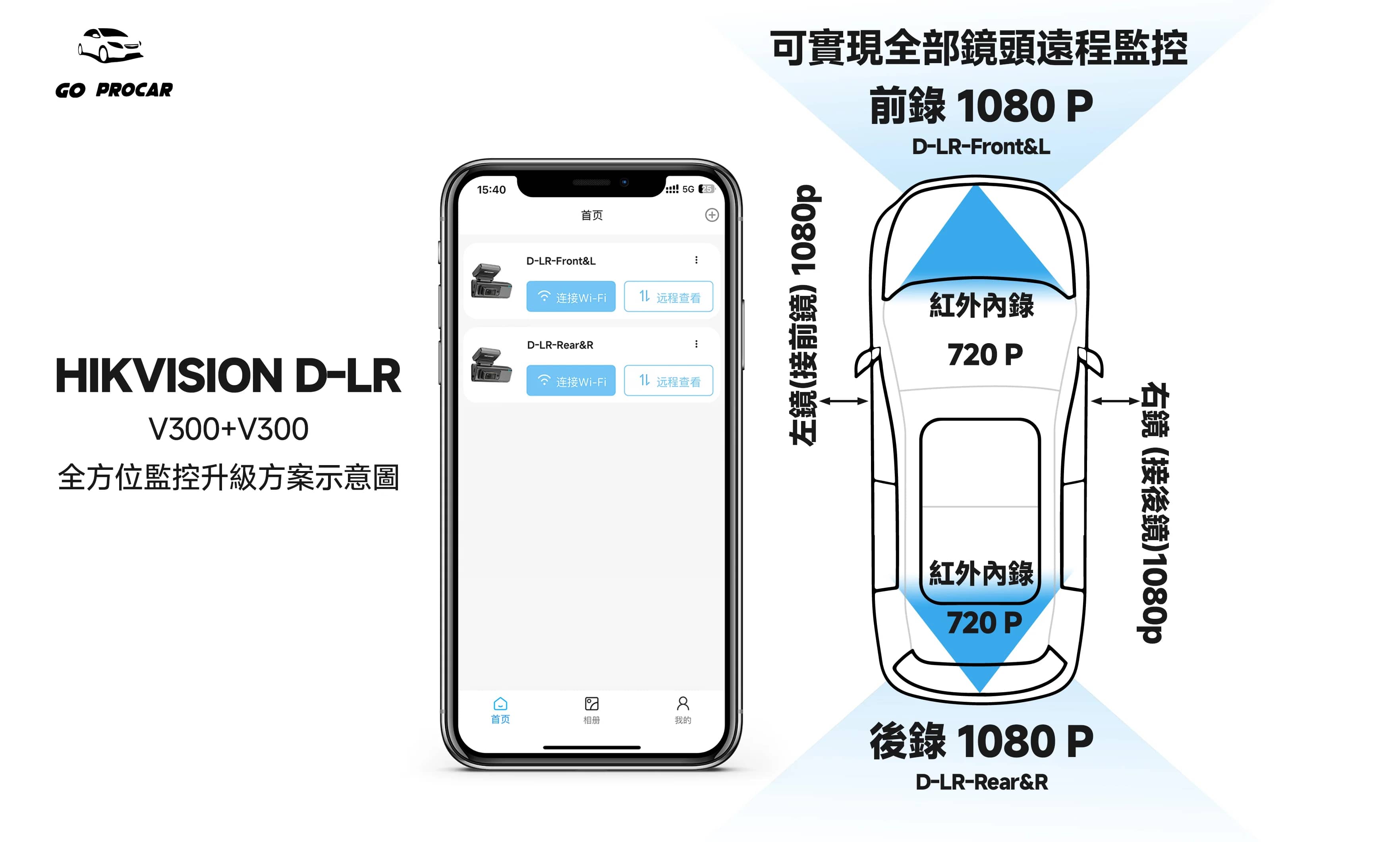 此套裝包含 V300 前後鏡頭、D-LR 左右鏡頭及 D-EVO Ultra 14800mAh 外置電池,共 6 個鏡頭,覆蓋前後左右、車廂前後,實現 360 度全方位監控。前錄、左右錄達 1080P 畫質,車內錄為 720P 紅外線夜視款,夜間拍攝清晰,還具備高清高透玻璃鏡頭,畫質更優。支援 ADAS 駕駛輔助、碰撞感應警示、24 小時停車監控與循環錄影,行駛或停車時可視化警示燈常亮,提升安全性。可透過海康慧眼 APP 實現遠端監控、軌跡顯示與錄影回放,支援本地保存。採用流線設計,車身貼合度高,便利安裝,適合 G2PRO、M3PRO 等機型,輕鬆覆蓋三車道,不漏拍細節。