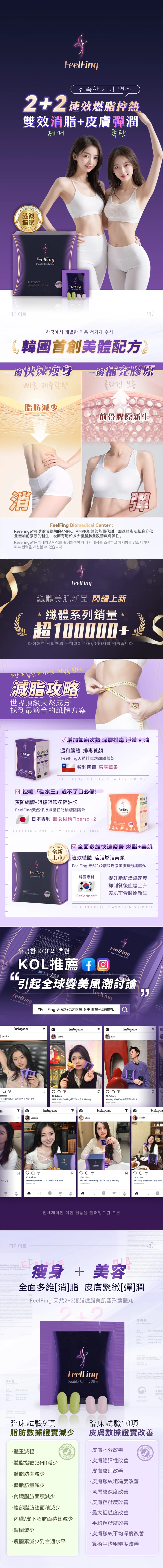 這款纖體丸源自韓國,是港澳獨家 2+2 專利配方,並獲得韓國 KFDA 認證。每袋含 2 顆紫錠與 2 顆綠錠,精選韓國繡球葉萃取物等 100% 天然植物原料,採用腸溶包衣技術直達腸道起效。核心透過 6 重瘦身通路,活化 AMPK 調節能量代謝,阻斷碳水糖分、抑制脂肪合成與血糖上升,同時促進前骨膠原新生。經臨床驗證,可減少體脂、BMI 及內臟脂肪,還能改善皮膚水分與彈性。每日 1 袋,方便攜帶,適合亞洲人體質,實現瘦身與美肌雙重功效。