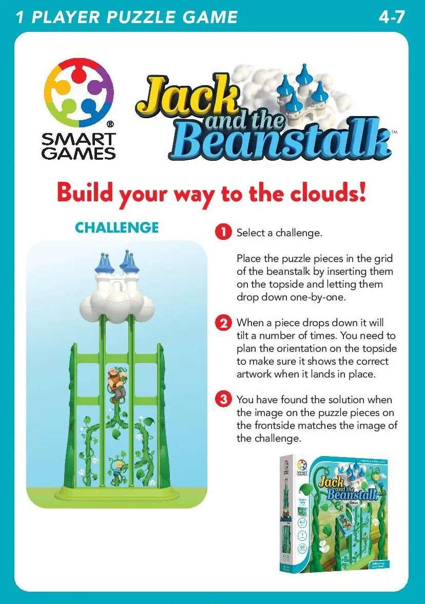 Outlet Express HK 生活百貨城在香港觀塘提供 SmartGames SG026 兒童益智桌遊 - 傑克與魔豆 | 運動專注力與問題解決能力 | 提升空間感知與視覺認知 | 香港行貨 在那裡買邊到買或邊度買代理資料及價錢實惠借批發優惠以及公司學校報價,更可送到香港或澳門而部份產品比團購更優惠,更可以為你推薦推介相似產品及優點缺點,請留意我們最新產品價格更新。