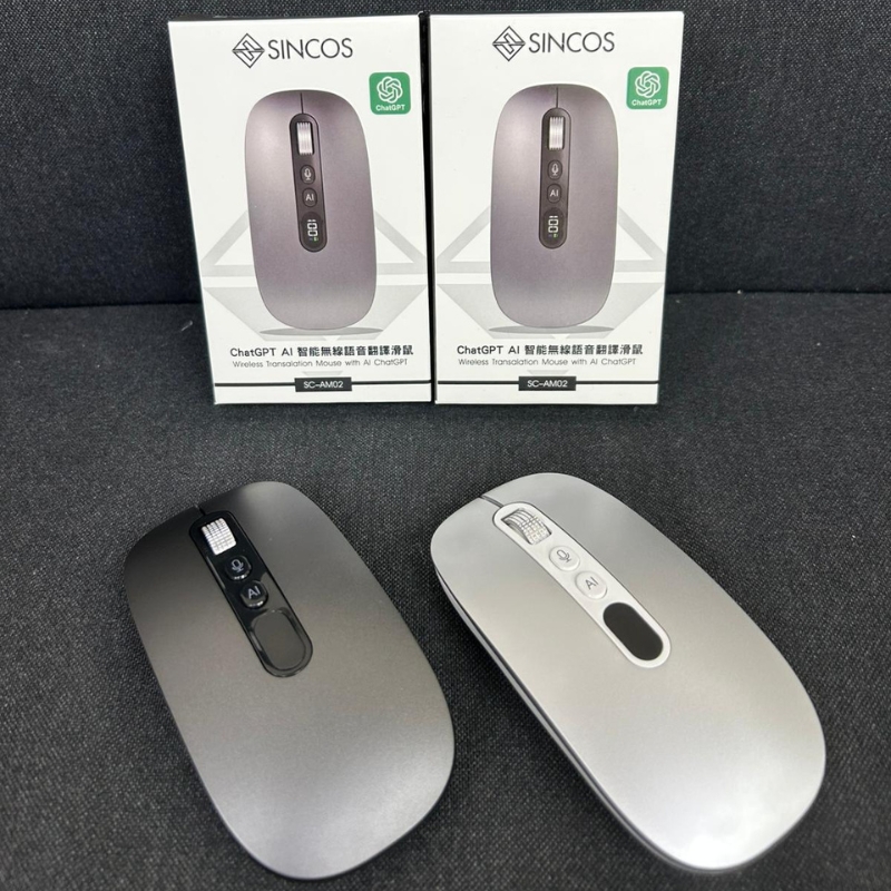 Sincos SC-AM02 ChatGPT AI 智慧無線語音翻譯滑鼠,作為香港行貨的辦公神器,搭載 2.4GHz + 藍牙三模連接,可同時綁定 3 個裝置無需反複配對,Windows 與 Mac 雙系統輕鬆適配。語音打字每分鐘可達 500 字,支援 130 種語言語音翻譯,截圖、文件翻譯一鍵搞定,語音搜尋即刻喚起瀏覽器。內建 ChatGPT 無需 VPN 且永久免費,可協助 PPT、Excel、Word 等 AI 創作,更有一鍵圖片背、語音 / 打字繪圖功能。 Type-C USB 充電設計告別電池消耗,靜音按鍵不打擾他人,電量狀態清晰可見,無論是辦公室溝通還是設計創作,都能大幅簡化工作流程,提升效率。