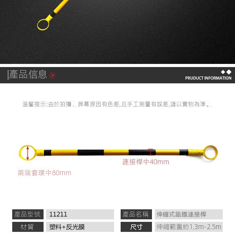 Buy 伸縮路錐連接桿 路錐警示桿 反光路錐桿 PVC路錐連接桿 11211 - 黃/黑桿Φ40 圈Φ80 長1.3~2.3m price in outletexpress .com Hong Kong.In promotion and sale.