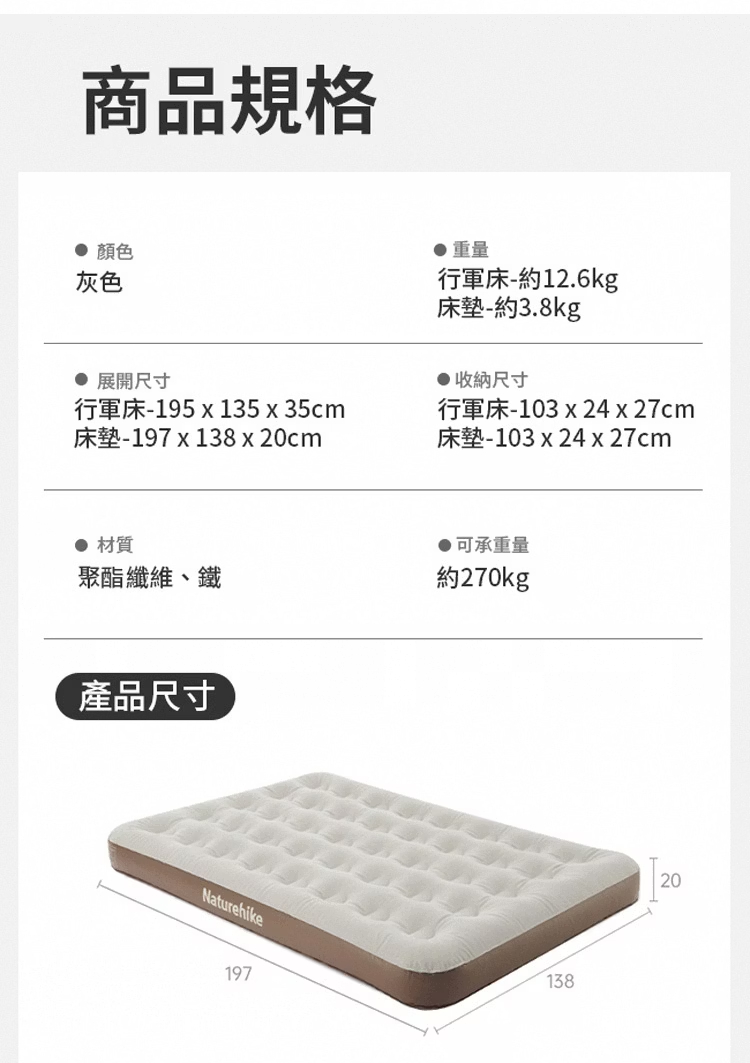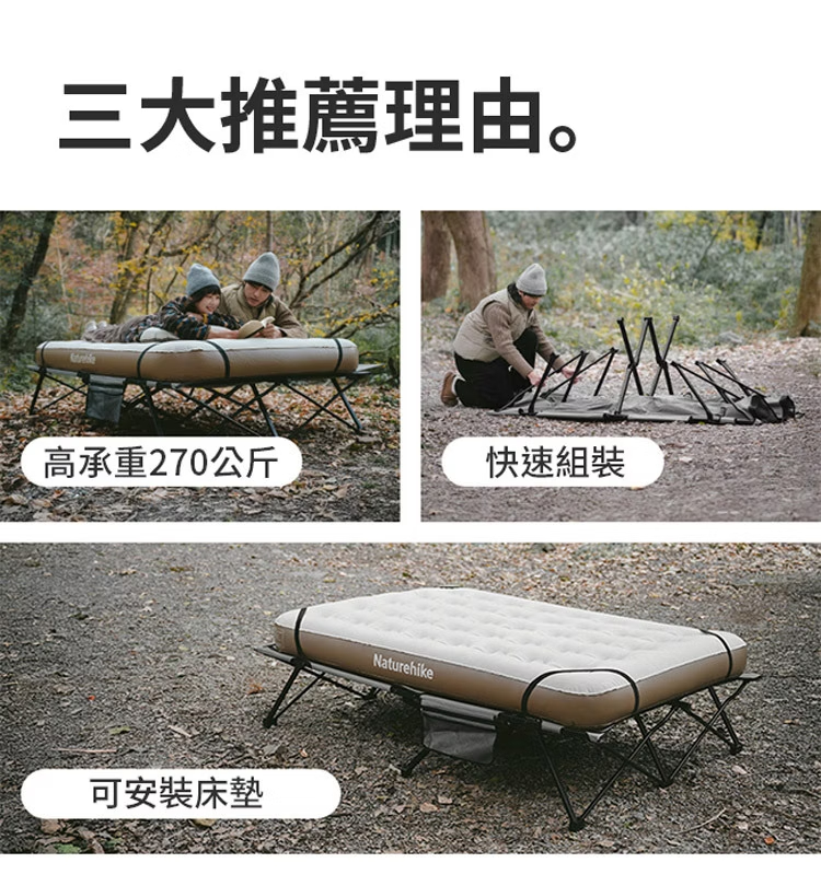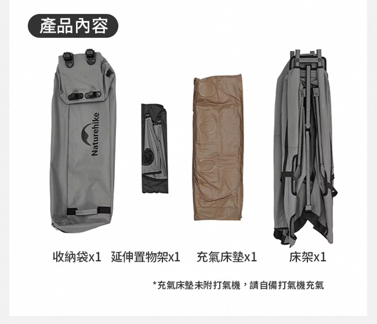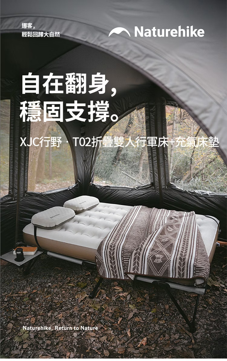 Buy Naturehike XJC 行野 T02折疊雙人行軍床+充氣床墊(CNK2450WS045) - 岩灰色 | X型鋼架結構 | 270kg承重 price in outletexpress .com Hong Kong.In promotion and sale.