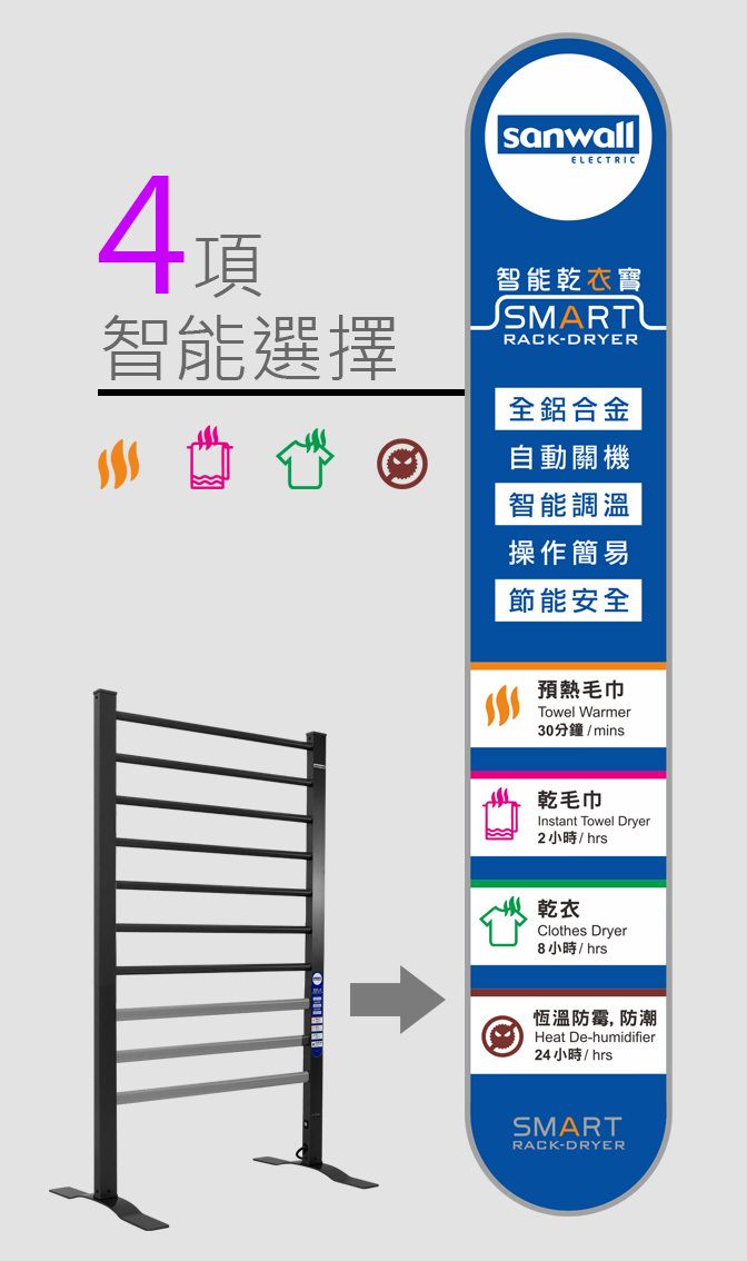 Buy Sanwall ATW02TM-10-SMART 200W 智能乾衣電熱毛巾架 - 銀色 | 全智能式乾衣系統 | 4種特選模式 | 香港行貨 price in outletexpress .com Hong Kong.In promotion and sale.