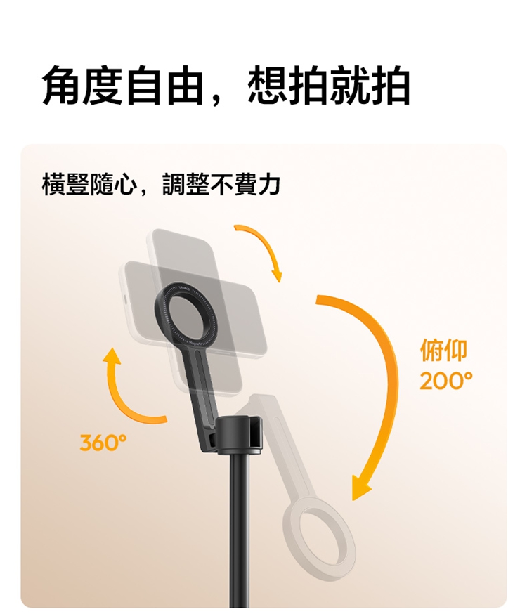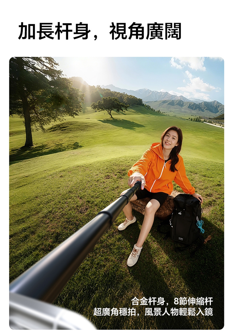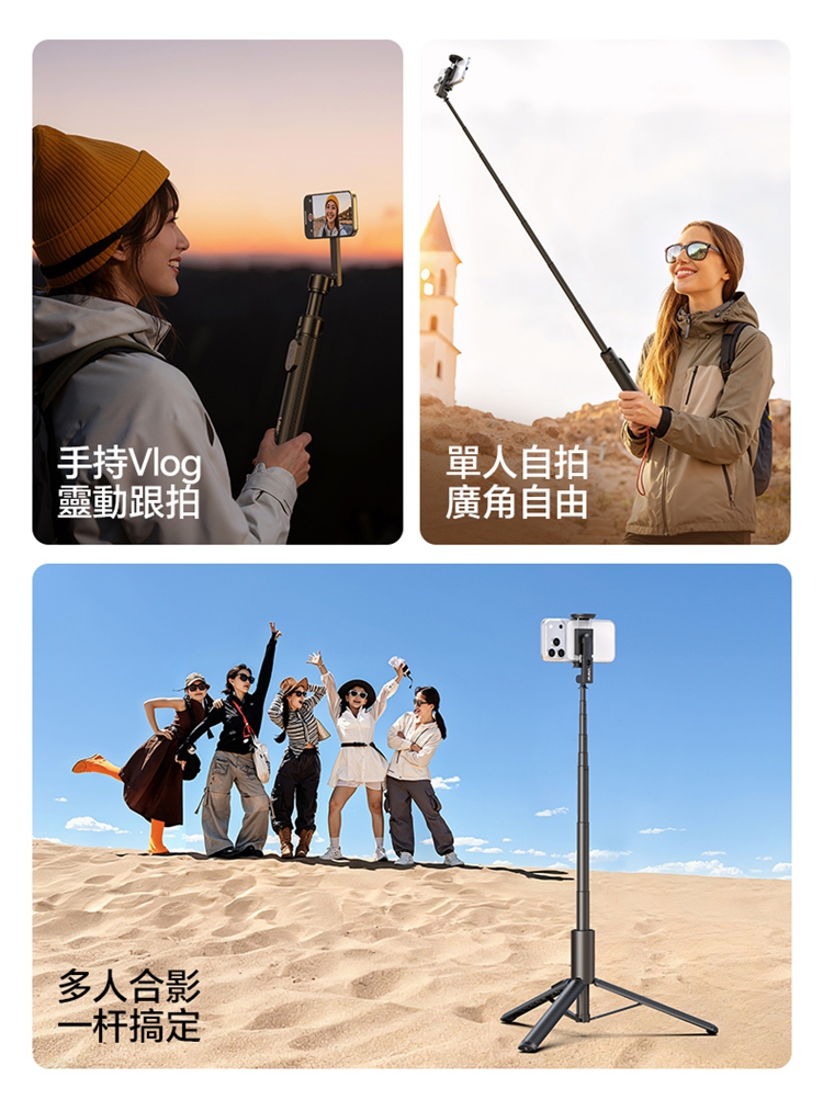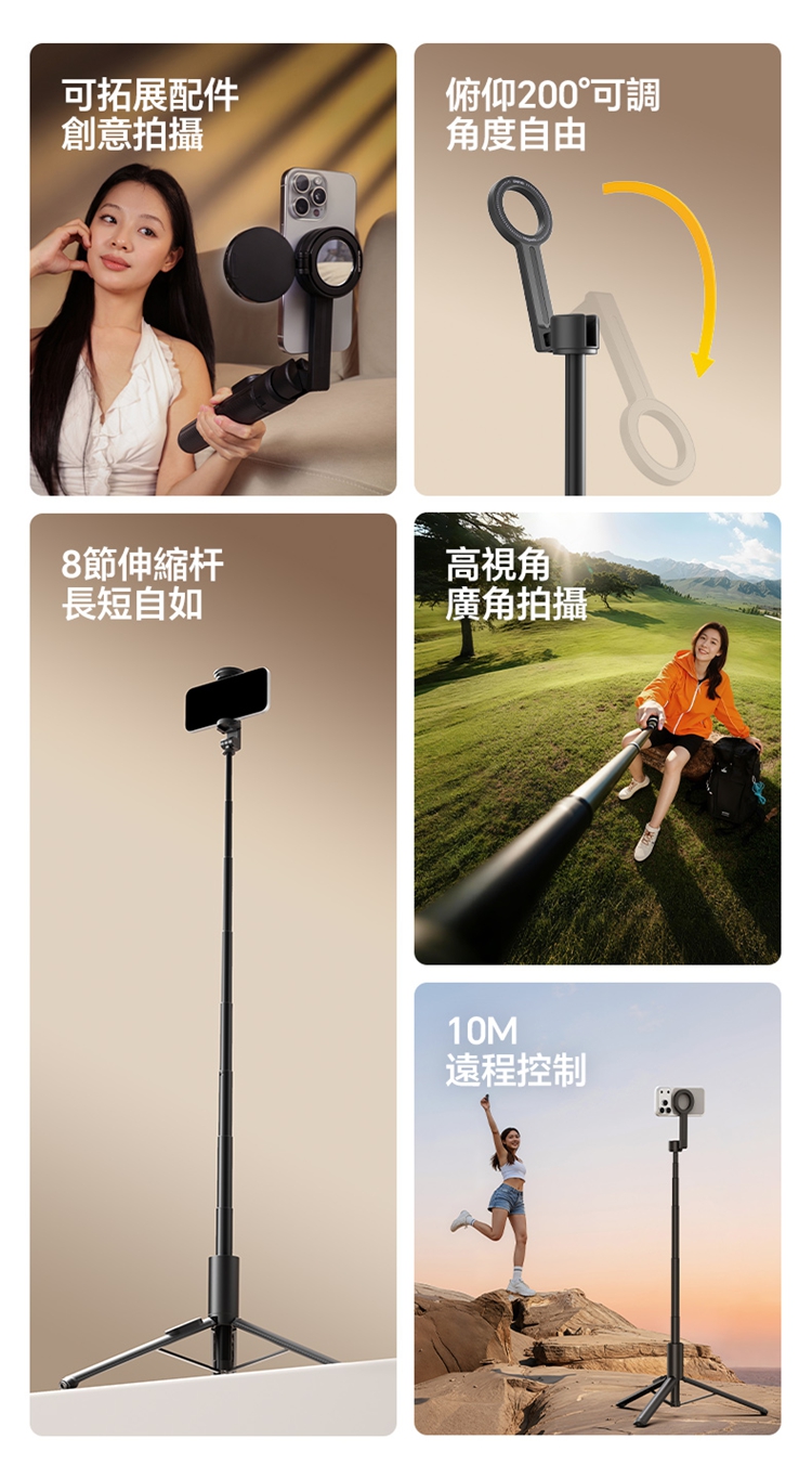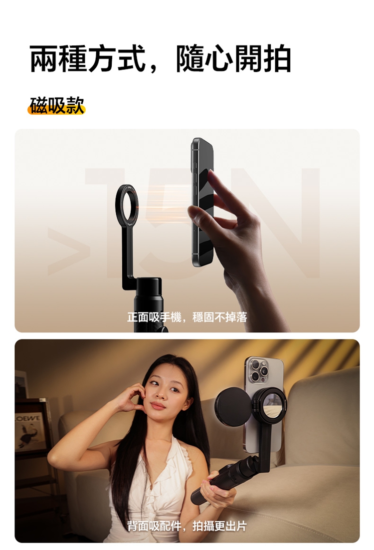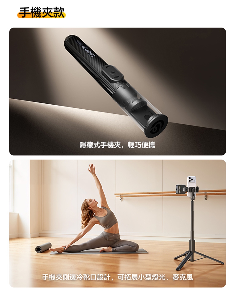 ULANZI SK27 手提自拍棒支架 Plus(磁吸款)- 黑色,是專為手機設計的新拍攝輔助工具。產品兼具便攜性與實用性,適配日常出遊、旅行等多種場景,方便隨時取用。核心亮點為磁吸設計,可快速吸附固定手機,無需複雜操作,輕鬆實現自拍自由。同時具備三腳架功能,能穩定支撐設備,避免拍攝時晃動,提升畫面清晰度。無論是日常自拍、風景記錄,還是直播、Vlog 創作等需求,它都能高效滿足,為手機用戶提供靈活、便捷的拍攝解決方案,是日常記錄與創作的優質搭檔。