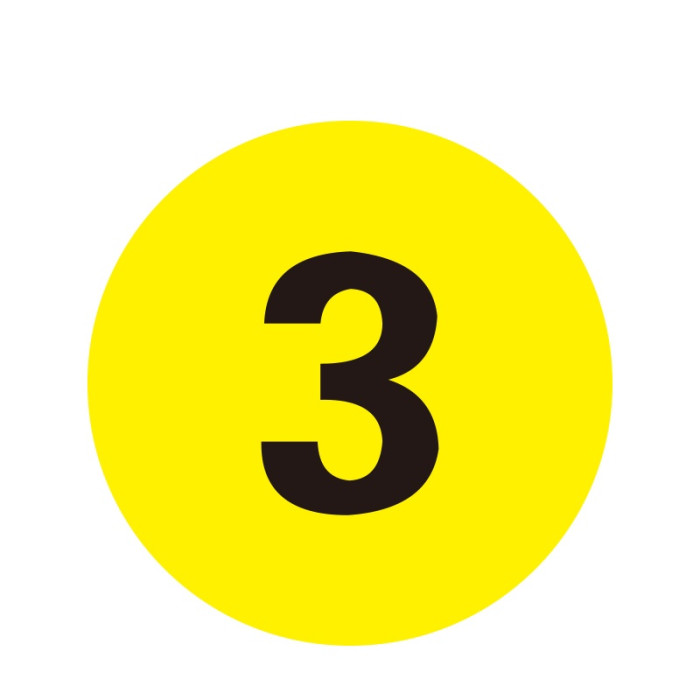 Outlet Express HK 生活百貨城在香港觀塘提供 耐磨庫位編號地貼(3)區域編號地貼 數位地貼標示 Φ20cm 12152 - 黃底黑字Φ200mm 在那裡買邊到買或邊度買代理資料及價錢實惠借批發優惠以及公司學校報價,更可送到香港或澳門而部份產品比團購更優惠,更可以為你推薦推介相似產品及優點缺點,請留意我們最新產品價格更新。