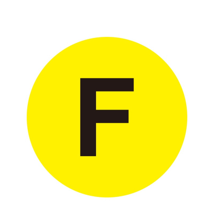 Outlet Express HK 生活百貨城在香港觀塘提供 耐磨庫位編號地貼(F)倉庫目視化警示地貼 字母地貼 Φ20cm 12164 - 黃底黑字Φ200mm 在那裡買邊到買或邊度買代理資料及價錢實惠借批發優惠以及公司學校報價,更可送到香港或澳門而部份產品比團購更優惠,更可以為你推薦推介相似產品及優點缺點,請留意我們最新產品價格更新。