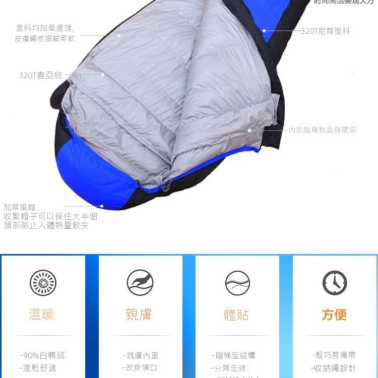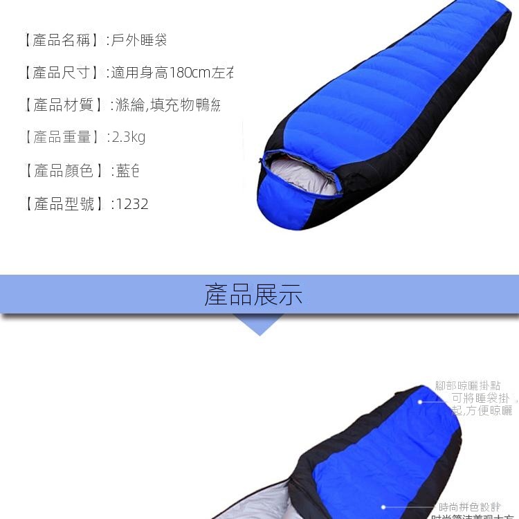 Buy 戶外防寒鴨絨睡袋 藍色 野外露營睡袋 野外探勘施工作業露營睡袋 鴨絨防寒露營睡袋 12328 - 藍色適用人群身高:180cm左右重量:2.3kg price in outletexpress .com Hong Kong.In promotion and sale.