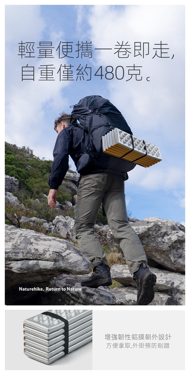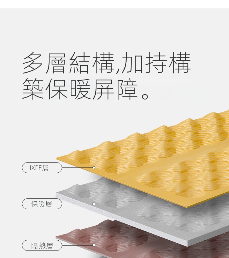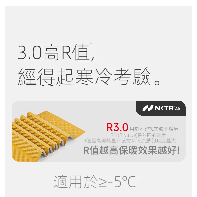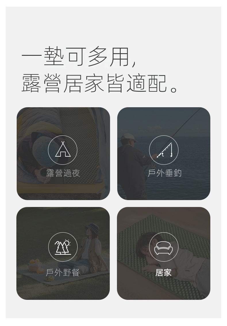 Naturehike Troues R3.0 折疊式蛋巢露營墊,適合戶外露營使用。具備3.0高R值保溫性能,適用於低至-5℃環境,有效隔絕地面寒氣。多層結構包含IXPE層、保暖層與防潮鋁膜,提供優異的保暖與防潮效果。2.5cm加厚設計搭配蜂窩螺旋結構,提升支撐力與回彈性。獨特蛋槽互嵌速收設計,輕鬆摺疊,方便隨身攜帶。一墊多用,適用露營、垂釣、野餐及居家場景,兼具實用與舒適。