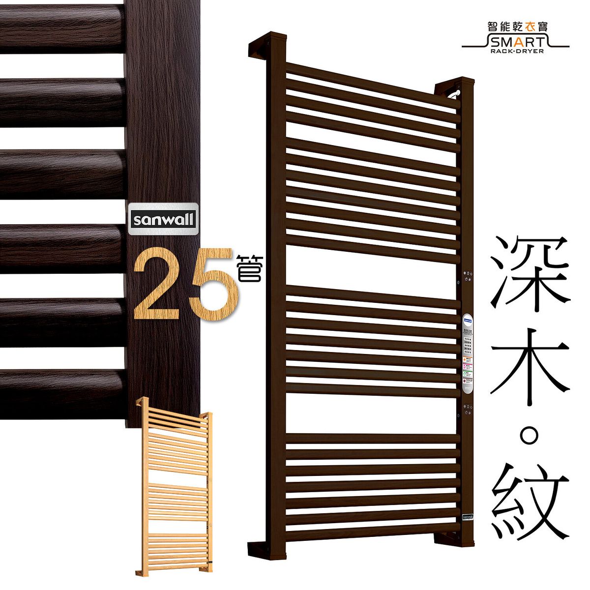 Buy Sanwall ATW01TM-25ULTRA 475W 25管智能乾衣電熱毛巾架 - 深木色 | 99.9% 殺菌率 | 上/下2組獨立調控按鈕 | 香港行貨 price in outletexpress .com Hong Kong.In promotion and sale.