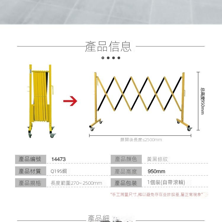 Outlet Express HK 生活百貨城在香港觀塘提供 移動式伸縮圍籬 可移動式伸縮隔離欄 鋼製伸縮隔離欄 14473 - 黃黑條紋高950mm長範圍220-2500mm 在那裡買邊到買或邊度買代理資料及價錢實惠借批發優惠以及公司學校報價,更可送到香港或澳門而部份產品比團購更優惠,更可以為你推薦推介相似產品及優點缺點,請留意我們最新產品價格更新。