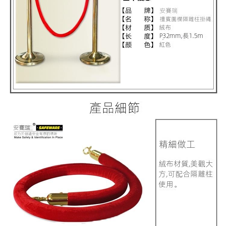 Outlet Express HK 生活百貨城在香港觀塘提供 禮賓圍籬隔離柱專用掛繩 禮賓柱掛繩 欄桿絨繩 一米線掛繩 14508 - 紅色Φ32×1.5m 在那裡買邊到買或邊度買代理資料及價錢實惠借批發優惠以及公司學校報價,更可送到香港或澳門而部份產品比團購更優惠,更可以為你推薦推介相似產品及優點缺點,請留意我們最新產品價格更新。