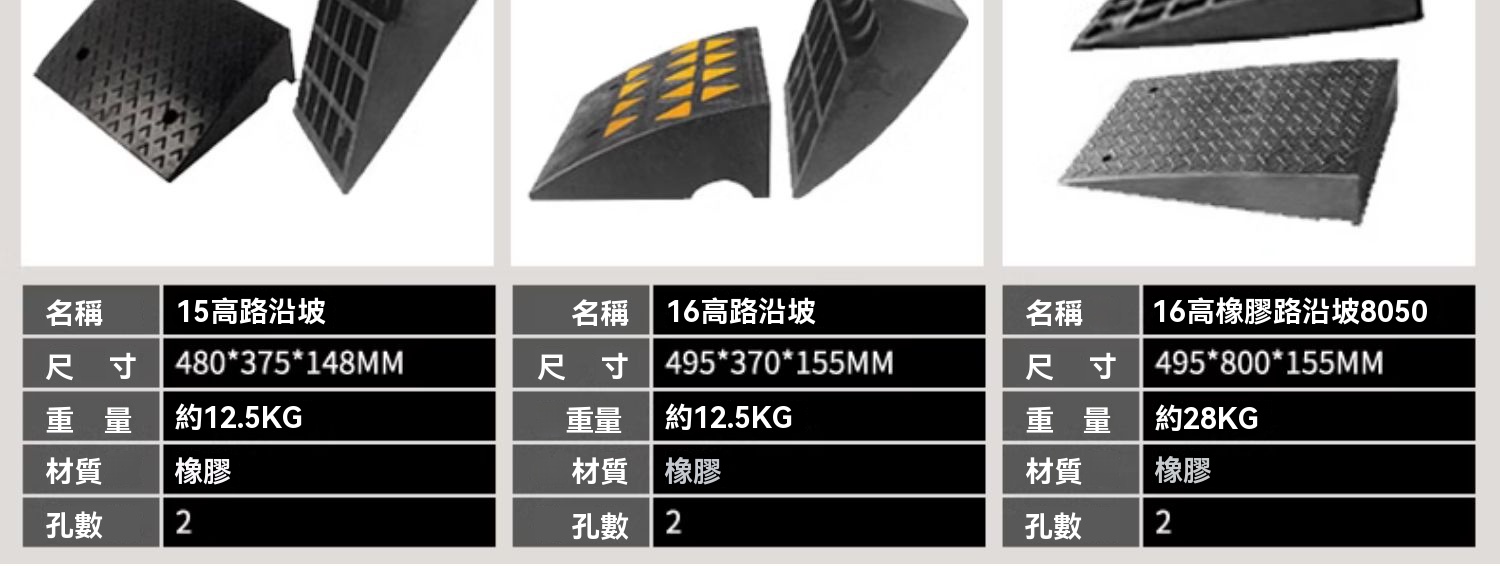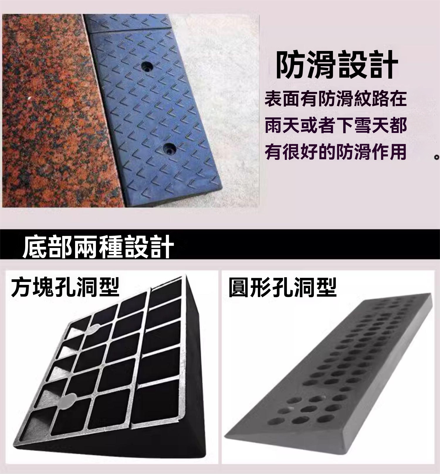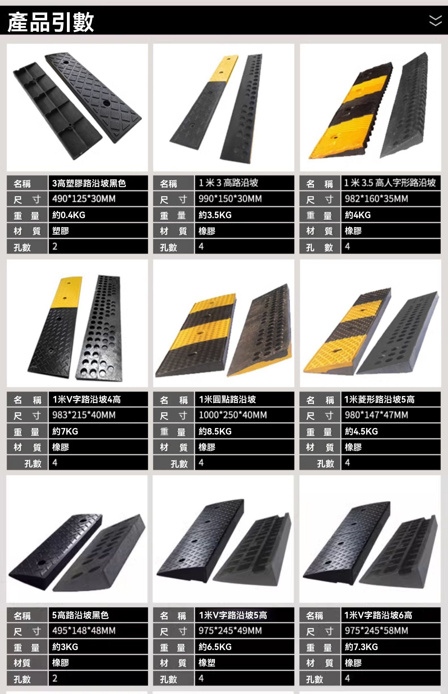 專為汽車、貨車設計的路沿爬坡墊,是出行裝載、停靠的實用好幫手!精選高品質高強橡膠打造,質地堅韌耐壓,承重力強且經久耐用,能有效減少車輛上下路沿時的磨損,通行過程平穩無噪音,減震防護效果拉滿。黃黑相間的醒目配色(部分為黑色),白天夜晚都能清晰識別,安全辨識度超高。科學坡度設計搭配防滑坡面,即便雨雪天氣也能牢牢抓地,避免車輪打滑,全方位守護路沿石與車輛安全。安裝超便捷,採用標準塊狀組合與“內膨脹錨固技術”,螺絲固定地面穩固不鬆動,面對車輛撞擊也不易移位。多種規格可選,適合不同車型與場景,不管是物流站點、停車場或私人場地,都是提升通行安全性與便利性的優質選擇!