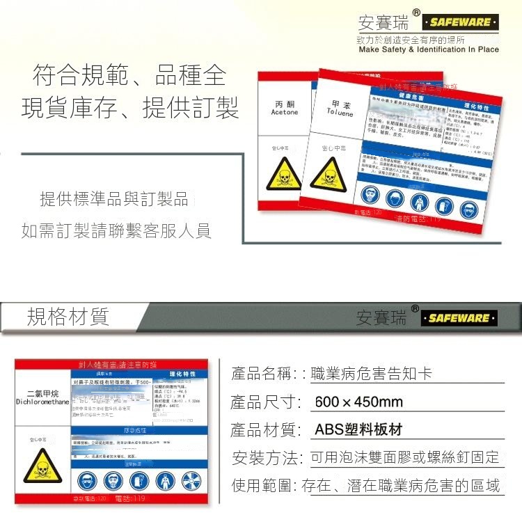 Outlet Express HK 生活百貨城在香港觀塘提供 職業病危害告知卡(丙酮)PVC塑膠板 600×450mm 14580 - 白色600×450mm 在那裡買邊到買或邊度買代理資料及價錢實惠借批發優惠以及公司學校報價,更可送到香港或澳門而部份產品比團購更優惠,更可以為你推薦推介相似產品及優點缺點,請留意我們最新產品價格更新。