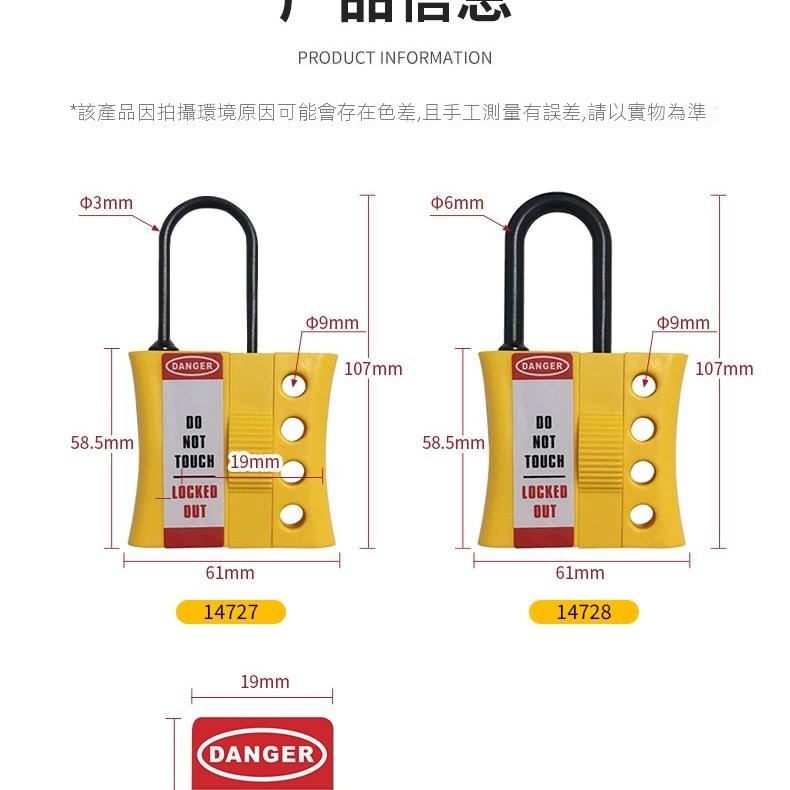 Outlet Express HK 生活百貨城在香港觀塘提供 絕緣安全鎖鉤 上鎖擴鎖器 絕緣六孔鎖鉤 尼龍扣鎖14728 - 黃色鎖梁Φ6mm61×108mm 在那裡買邊到買或邊度買代理資料及價錢實惠借批發優惠以及公司學校報價,更可送到香港或澳門而部份產品比團購更優惠,更可以為你推薦推介相似產品及優點缺點,請留意我們最新產品價格更新。
