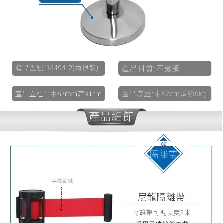 Outlet Express HK 生活百貨城在香港觀塘提供 慢伸縮型伸縮帶隔離柱(2個裝)不鏽鋼一公尺線 警示隔離柱 14494-2 - 原色L2mxH910mm 在那裡買邊到買或邊度買代理資料及價錢實惠借批發優惠以及公司學校報價,更可送到香港或澳門而部份產品比團購更優惠,更可以為你推薦推介相似產品及優點缺點,請留意我們最新產品價格更新。